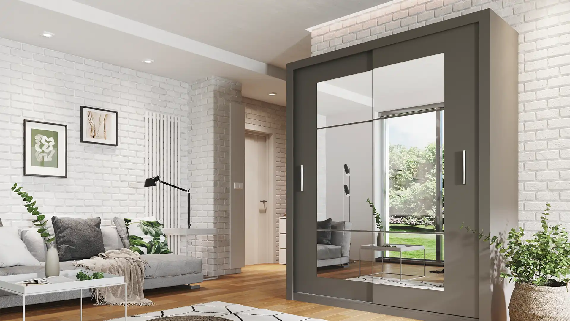 Szafa do salonu z lustrem oraz szafa przesuwna to doskonałe rozwiązanie do małych wnętrz.