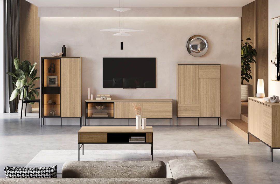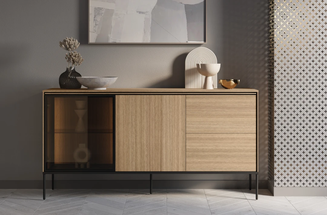 Taka powszechna prostota nie oznacza jednak braku dbałości o detale. Subtelne frezy, oryginalne ryflowania, ciekawe zaoblenia czy niebanalne uchwyty nadają komodom do salonu wyrazistość i unikalny charakter. Pamiętajmy też, że modna i elegancka komoda to komoda na nóżkach. A nóżki są jednym z tych elementów, które potrafią całkowicie odmienić design mebla. Smukłe i cienkie, geometryczne, skośne – każda opcja potrafi nadać meblom do salonu inny styl, od subtelnej elegancji po wyrazistą nowoczesność.