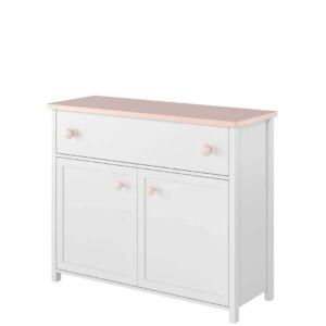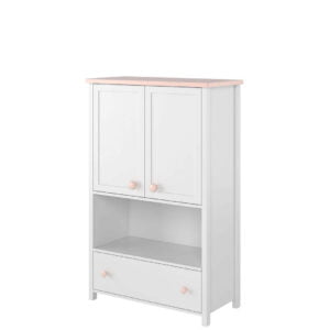 Wraz z wiekiem dziecka rośnie ilość dziecięcych rzeczy, które trzeba gdzieś schować – ubrań, zabawek, książek i szkolnych akcesoriów. Dlatego im więcej miejsca do przechowywania tym lepiej, bo łatwiej utrzymać porządek. Najważniejsza jest szafa – najlepiej taka, która posiada drążek na wieszaki oraz przestrzeń z półkami na poskładaną odzież. W kolekcji mebli do pokoju dla dziewczynki LUNA dostępne są dwie szafy do wyboru – obie wysokie, z dwojgiem drzwi i w baśniowej stylistyce. Niskie nóżki, biel połączona z różowymi detalami i falisty cokół to połączenie wprost stworzone dla małej księżniczki. Szafy różnią się układem wnętrza – jedna oferuje długi drążek na odzież, a druga krótszy drążek i wewnętrzny pion z półkami. W obu szafach, na dole zaplanowano pojemną i łatwo dostępną szufladę na drobne ubrania lub inne drobiazgi.