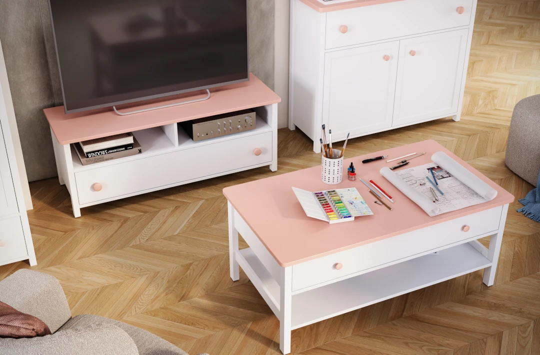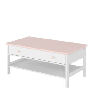 Współczesne małe księżniczki są bardzo nowoczesne, dlatego w ich pokojach sprawdzi się szafka RTV. Taki mebel przyda się zwłaszcza wielbicielkom kina lub gier interaktywnych. Blat jest na tyle duży, że spokojnie zmieści się na nim sporych rozmiarów telewizor lub monitor. Poniżej znajdują się dwie wnęki na sprzęt elektroniczny (np. konsolę lub odtwarzacz), a jeszcze niżej pojemna szuflada na piloty, pady i kolekcję gier. A jeśli na wspólne granie często wpadają koleżanki przyda się stolik kawowy, na którym można ustawić poczęstunek. Mebel jest nieduży, ale za to bardzo praktyczny, a do tego elegancki. Wyposażono go w praktyczną szufladę umieszczoną tuż pod blatem oraz półkę. Dzięki stolikowi podejmowanie gości będzie czystą przyjemnością!