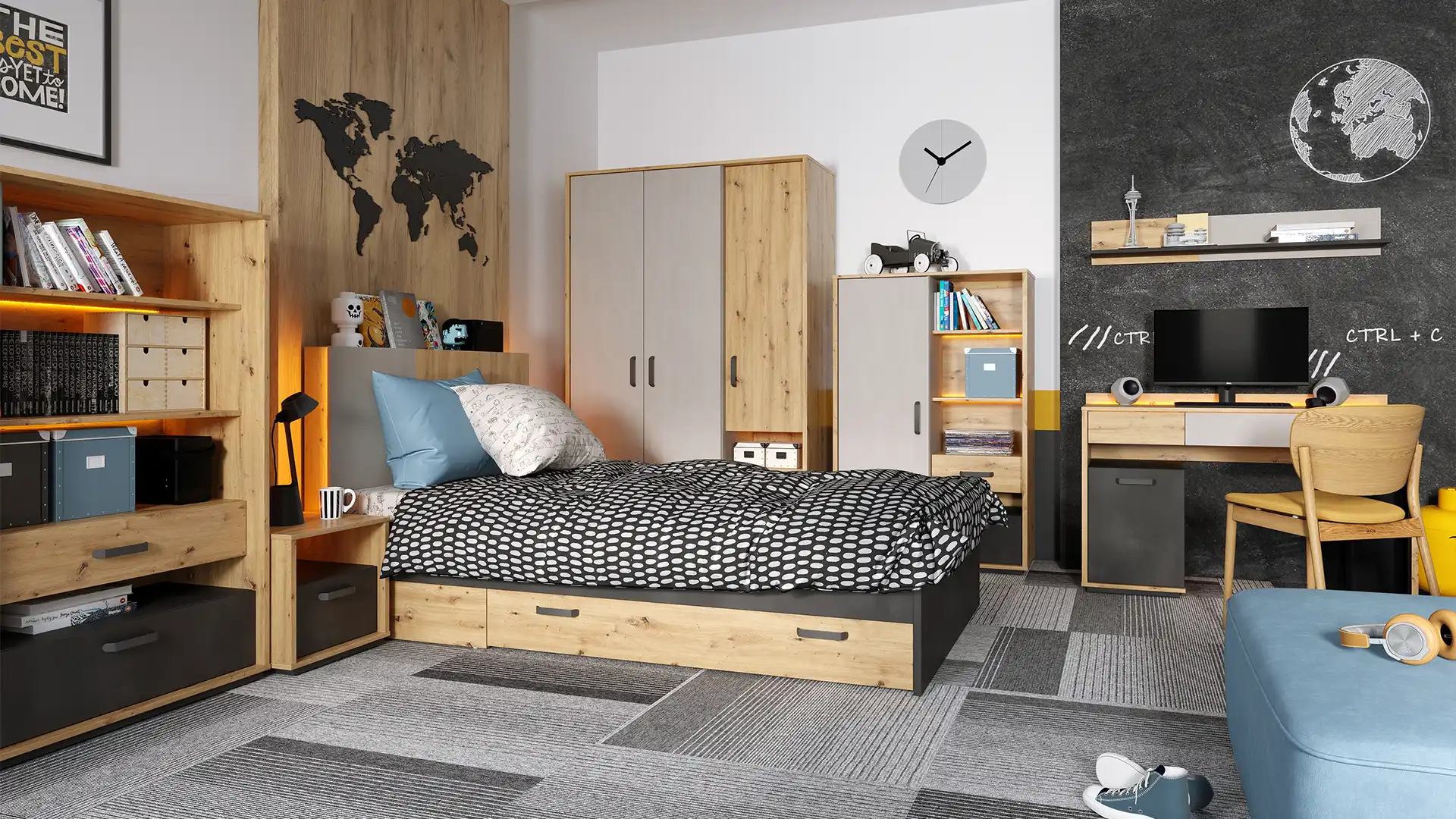W kolekcji młodzieżowej Qubic pokazaliśmy nowy pomysł na nowoczesny i bardziej funkcjonalny pokój dla nastolatków.