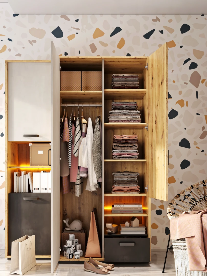 Mieszkaj modnie i funkcjonalnie bez względu na to, ile masz lat. Wybierz meble Qubic i stwórz własną, wymarzoną przestrzeń. Odmień swój pokój wykorzystując estetycznie kontrastujące szarości i ciepłe wybarwienie przypominające drewno.