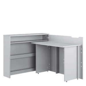 Praktyczne, rozsuwane biurko, które pozwala wygodnie gospodarować przestrzenią. Sprawdzi się w pokoju dziecka i nastolatka, gabinecie, biurze, małej kawalerce. Dzięki kółkom umieszczonym pod podstawami, biurko można łatwo i szybko zamknąć. Po złożeniu wygląda jak zwykła komoda, a jej blat można wykorzystać do wyeksponowania ulubionych dekoracji.