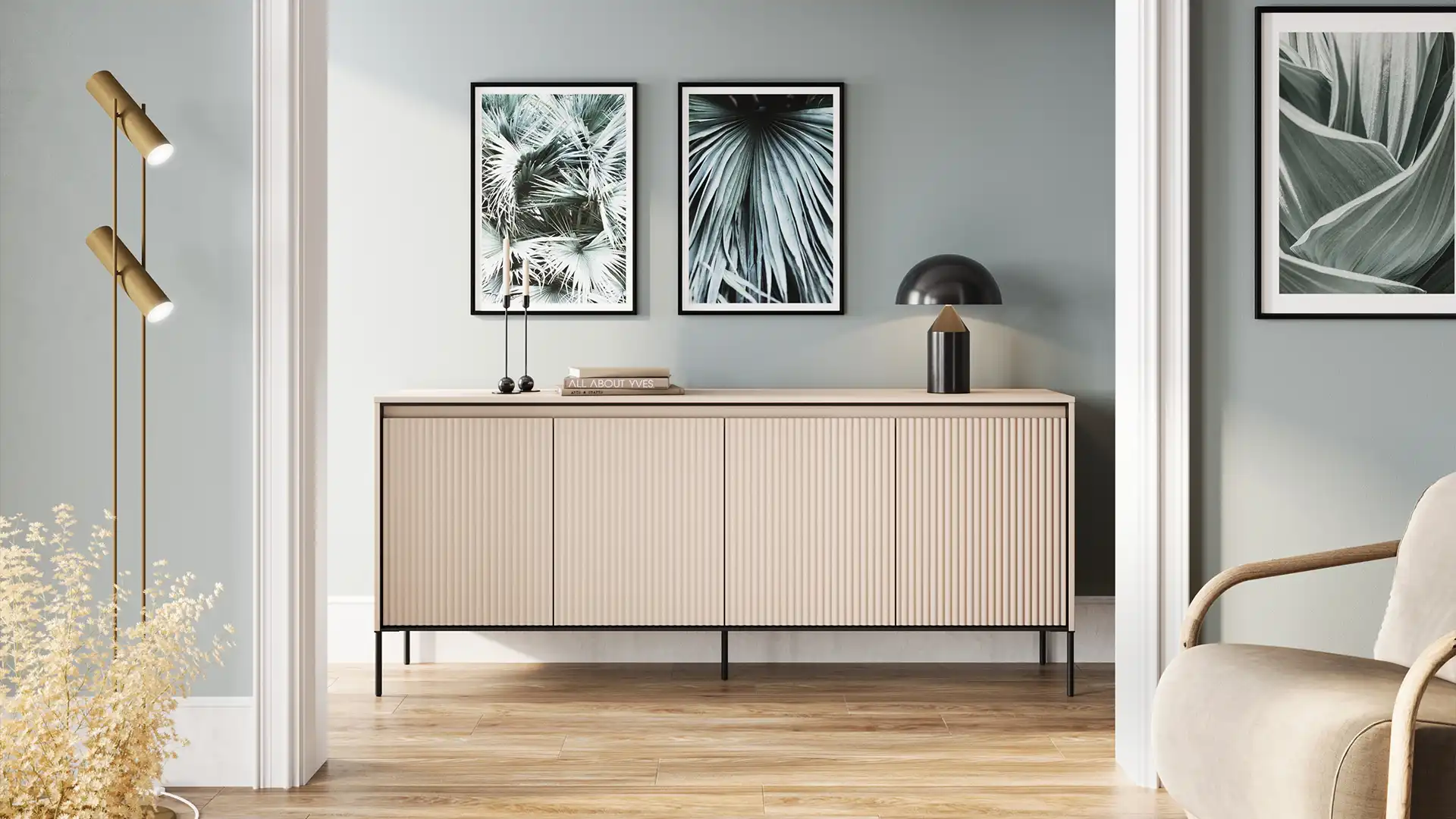 Komoda ryflowana to niezwykłe połączenie funkcjonalności i estetyki, które idealnie sprawdzi się w modnych i wyrazistych wnętrzach – salonie, sypialni i przedpokoju.