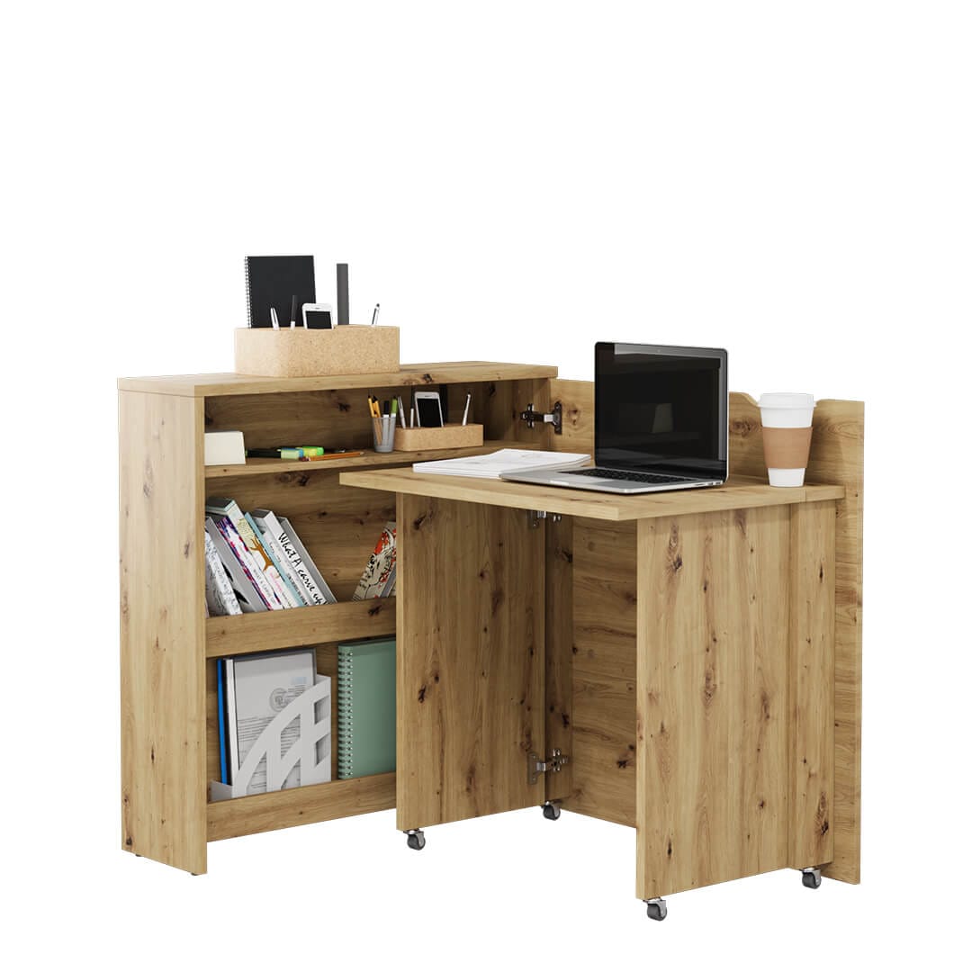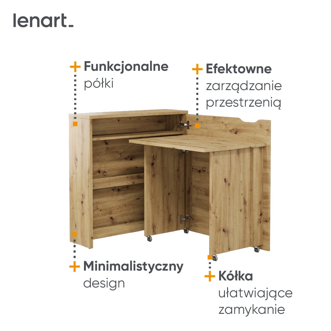 Jeśli szukasz biurka do niewielkiego pokoju lub kawalerki – WORK CONCEPT SLIM jest właśnie dla Ciebie! Małe składane biurko to mebel zarówno dla młodzieży, jak i dorosłych, które umili czas podczas nauki lub pracy zdalnej. W swoim wnętrzu skrywa trzy pojemne i funkcjonalne półki na dokumenty. Dzięki kółkom można je łatwo i szybko zamknąć, co sprawia, że od razu zapominamy o wykonywanych wcześniej obowiązkach i możemy się w pełni zrelaksować. Dostępne jest w czterech kolorach, w wersji prawo i lewostronnej, a także w dwóch rozmiarach.
