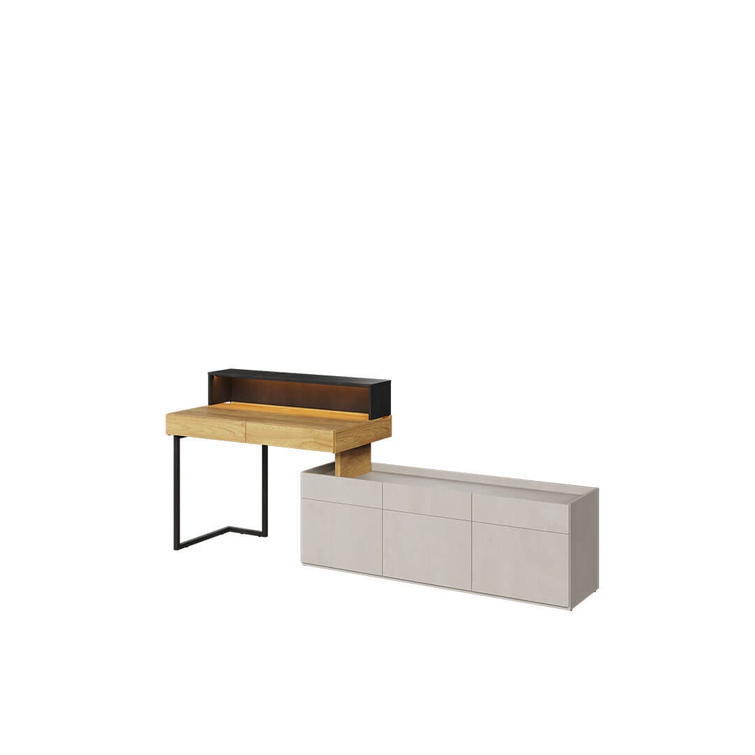 SET-13B to atrakcyjnie wizualnie biurko z nadstawką i szafką dla nastolatka, zapewniające dużo miejsca do przechowywania. To pomysłowe rozwiązanie świetnie sprawdzi się dla młodzieży potrzebującej przemyślanej przestrzeni do nauki i pracy. Nowoczesny design i stonowana kolorystyka mebla świetnie wpisują się w rozmaite style aranżacji wnętrz.