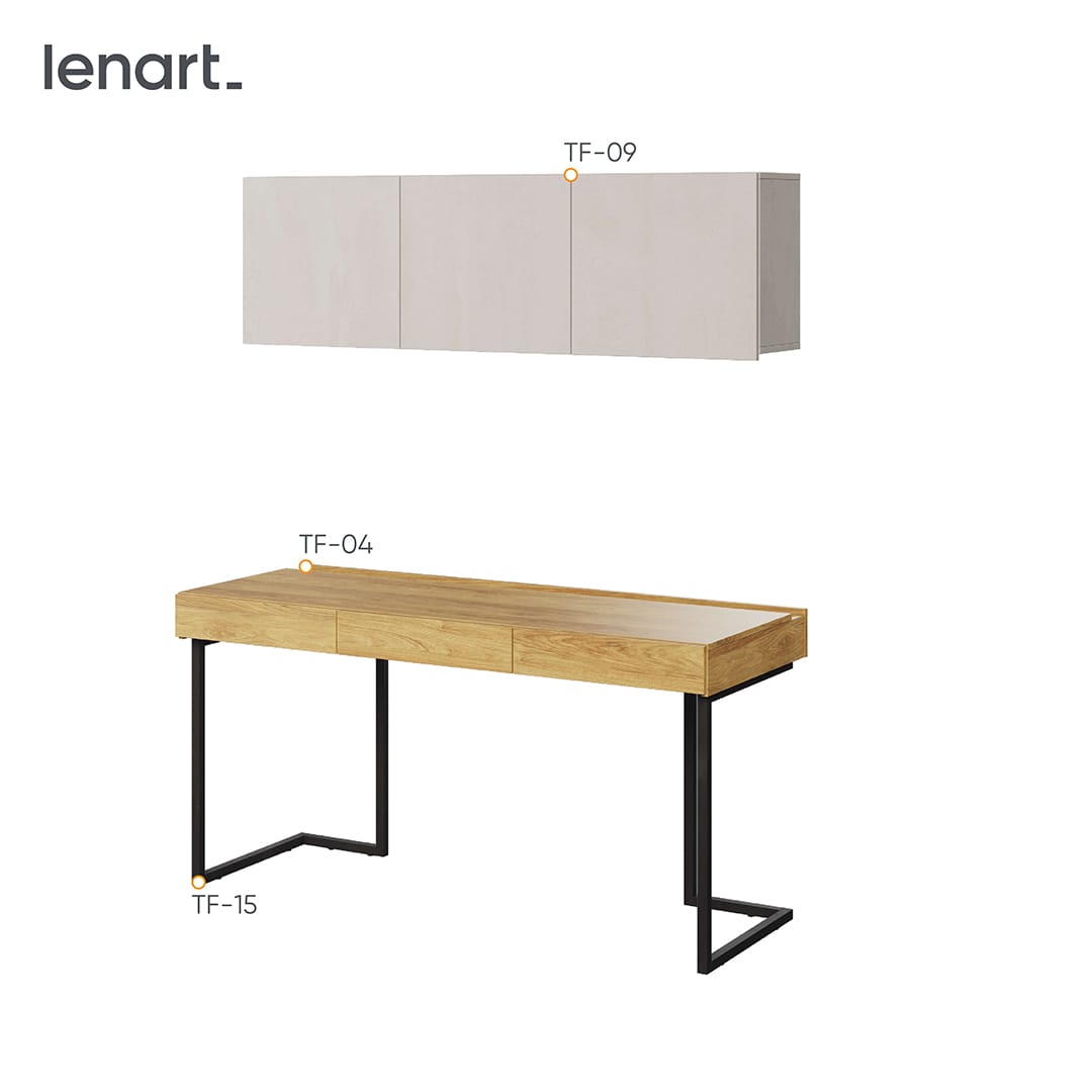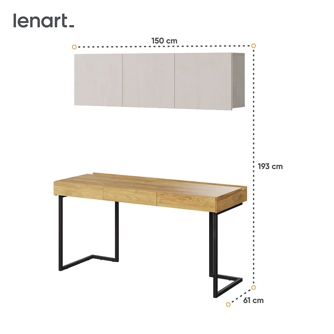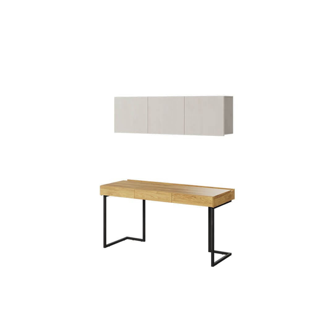 Biurko z szafką wiszącą do pokoju nastolatka ułatwia organizację przestrzeni do nauki. Stabilny blat pozwala na wygodne czytanie książek i odrabianie prac domowych. Umieszczone pod nim pod trzy szuflady umożliwiają przechowywanie pomocy dydaktycznych, które zawsze powinny znajdować się pod ręką. Podobną funkcję pełni naścienna szafka z potrójnymi drzwiczkami