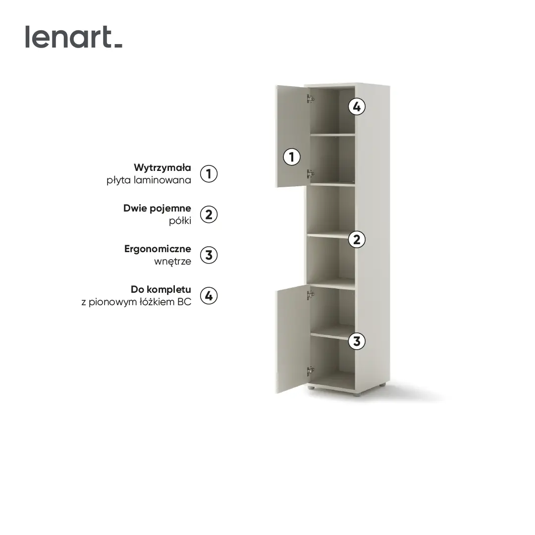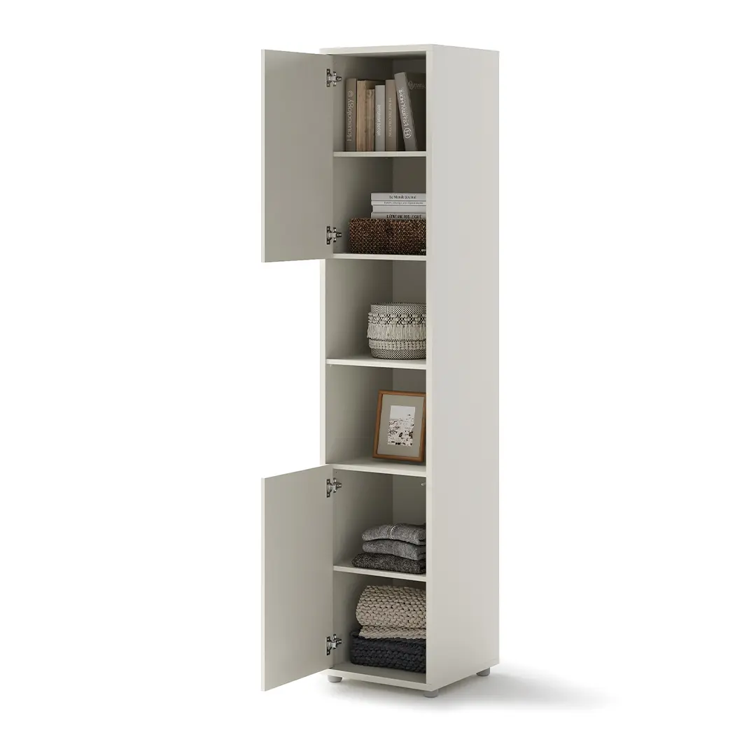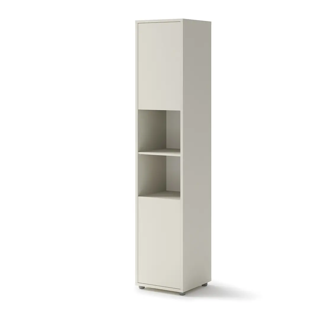 Dostawka do półkotapczanu pionowego to wysoki, dwudrzwiowy regał zaprojektowany z myślą o funkcjonalności i estetyce. Wyposażona w dwie otwarte wnęki, pozwala na wygodne przechowywanie książek, dekoracji lub innych przedmiotów codziennego użytku.