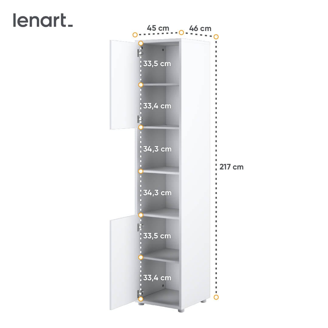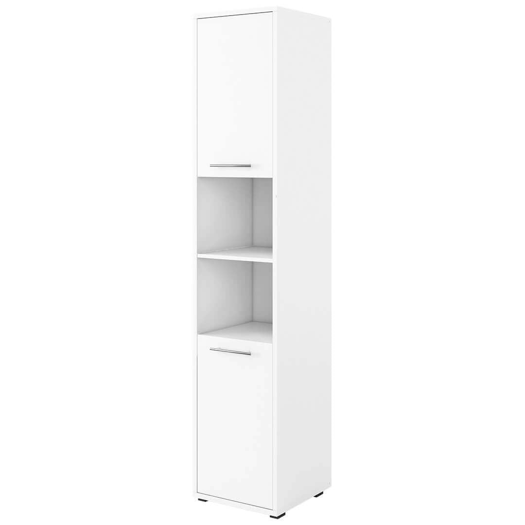 Wysoki pionowy regał do półkotapczanu CONCEPT PRO w wersji pionowej. Regał wyposażony jest w dwie zamykane szafki oraz dwie półki-wnęki. Ergonomiczny podział funkcjonalny pozwala na komfortowe przechowywanie odzieży i drobiazgów oraz wyeksponowanie książek lub dekoracji. Dzięki regałom korzystanie z półkotapczanu CONCEPT PRO jest jeszcze wygodniejsze i bardziej przypomina tradycyjną sypialnię.