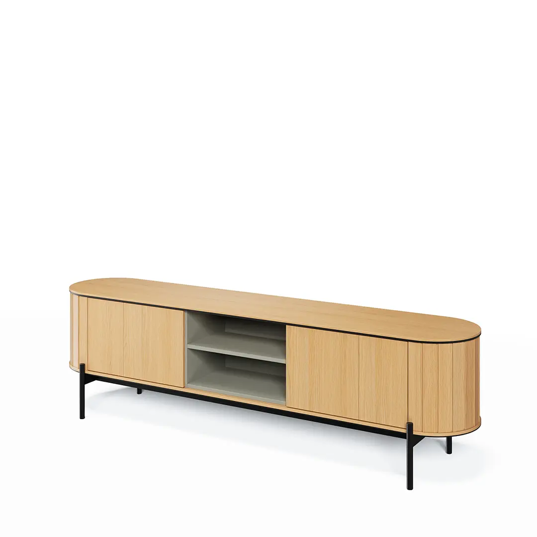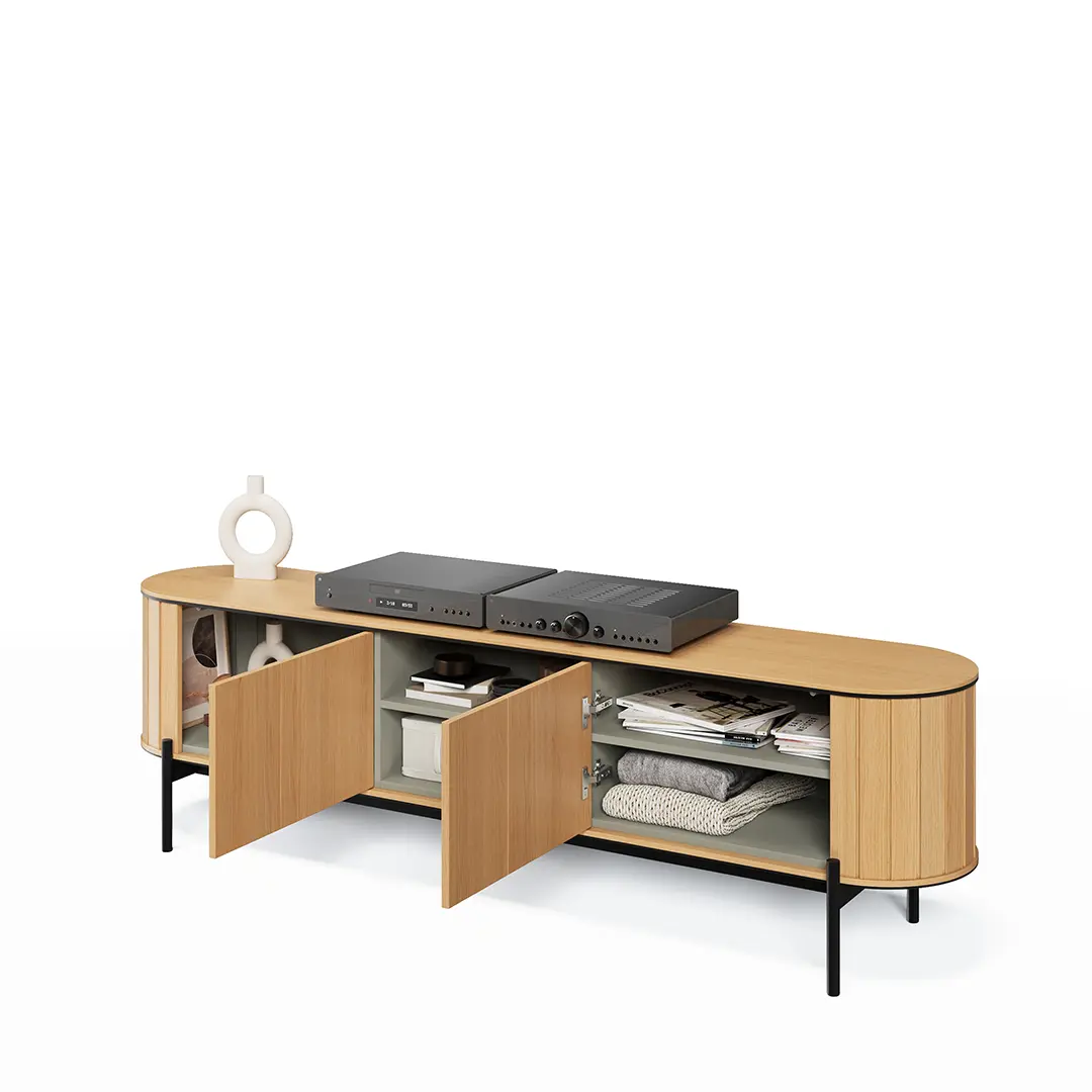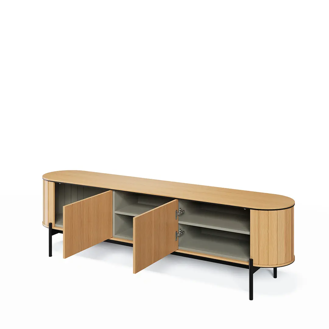 Nasze duże komody pod telewizor wykonane są z najwyższej jakości materiałów. Solidna konstrukcja gwarantuje trwałość i odporność na codzienne użytkowanie. Dodatkowo, starannie dobrane wykończenia i detale zapewniają elegancki wygląd, który utrzymuje się przez lata. Inwestując w naszą komodę, zyskujesz pewność, że będzie ona służyć przez długi czas, zachowując swoją funkcjonalność i estetykę.