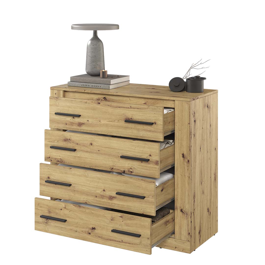 Zaplanowana z myślą o wygodzie codziennego użytkowania, nasza komoda 100 cm posiada precyzyjnie wykonane szuflady i półki, umożliwiające efektywne zorganizowanie przestrzeni. Teraz wszystkie niezbędne przedmioty będą zawsze pod ręką, a Twoje pomieszczenie uporządkowane. Solidne wykonanie i wysokiej jakości materiały gwarantują trwałość naszej komody. To nie tylko mebel do przechowywania, ale także inwestycja w stylowe i funkcjonalne wnętrze. Dzięki różnorodnym wariantom kolorystycznym, nasza komoda 100 cm pozwala na personalizację i dopasowanie do Twojego gustu. Zainwestuj w komfort i design z naszą komodą 100 cm.