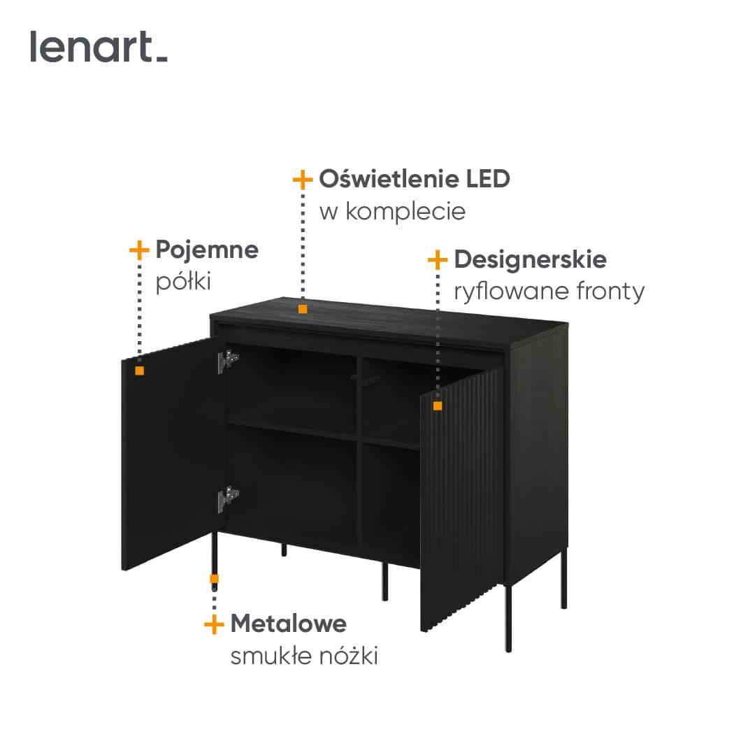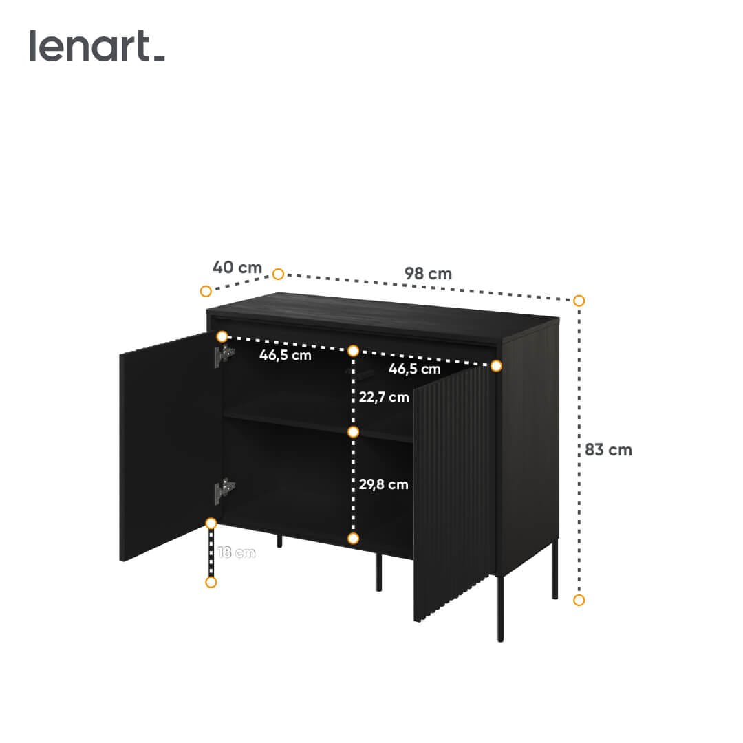 Nasza mała komoda o ryflowanych frontach jest nie tylko estetyczna, ale także praktyczna. Pomieści różnego rodzaju drobiazgi, takie jak biżuteria, książki, akcesoria czy nawet dokumenty. Półki zapewniają wystarczającą przestrzeń do przechowywania, jednocześnie pomagając utrzymać porządek. Mała komoda nie tylko spełni Twoje potrzeby w kwestii przechowywania, ale również będzie centralnym punktem w Twoim pomieszczeniu. Bądź w trendzie i ciesz się funkcjonalnością dzięki naszej małej komodzie o ryflowanych frontach w kolorze czarnym!