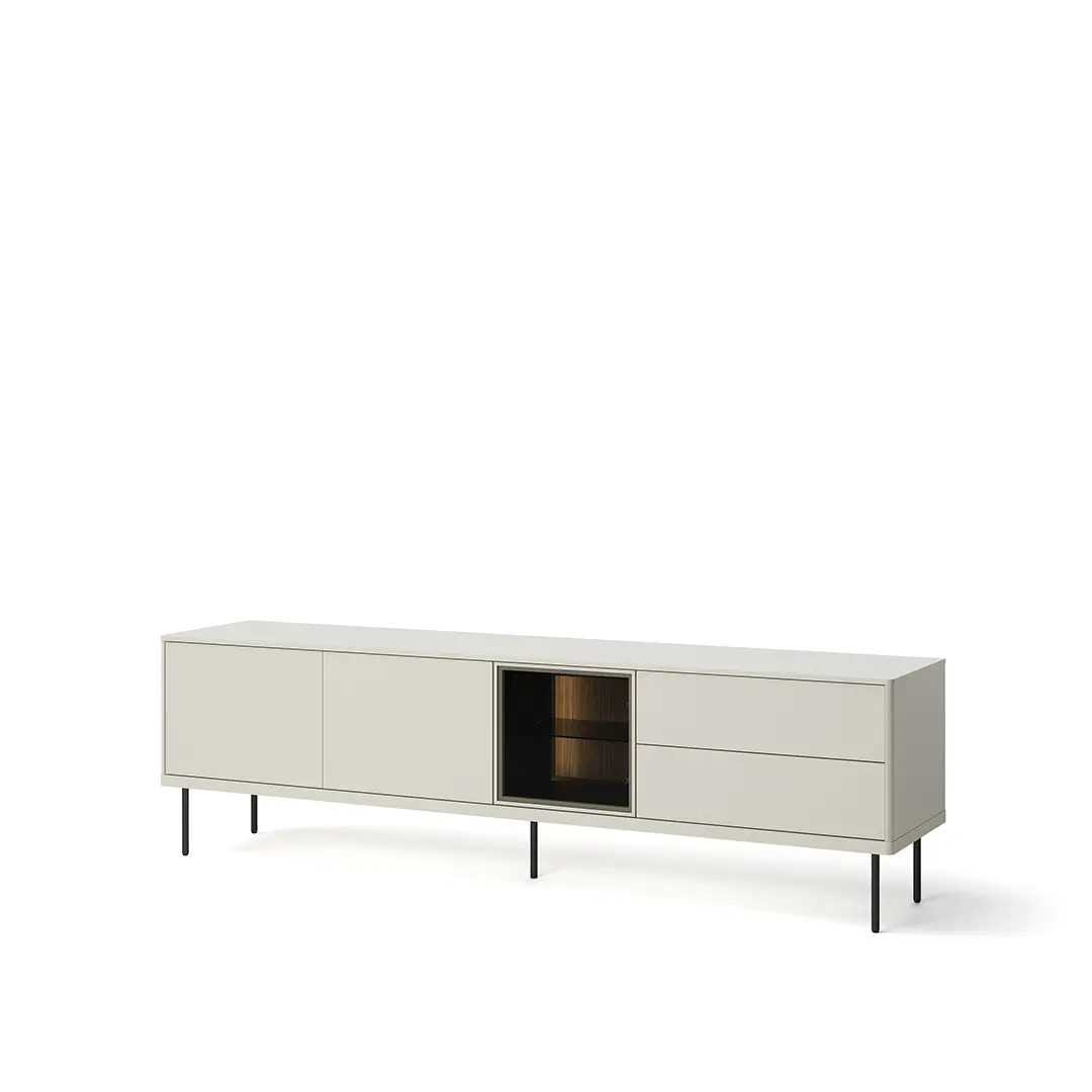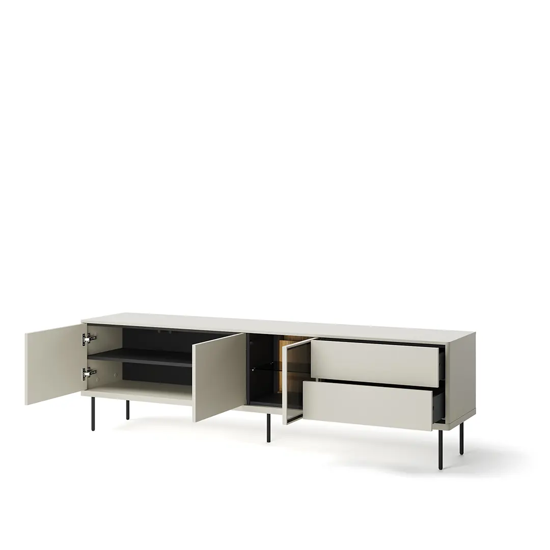 Komoda pod telewizor z szufladami jest stworzona z myślą o ustawieniu telewizora i wszystkich niezbędnych akcesoriów, takich jak dekoder, konsola do gier, czy soundbar. Jej wysokość pozwala na idealne ustawienie ekranu, co zapewnia komfortowe oglądanie z różnych miejsc w salonie. Dzięki specjalnie zaprojektowanej konstrukcji, komoda jest stabilna i bezpieczna – nie musisz się martwić o to, że telewizor będzie narażony na przypadkowe przesunięcie. To doskonała alternatywa dla osób, które nie chcą montować telewizora na ścianie.