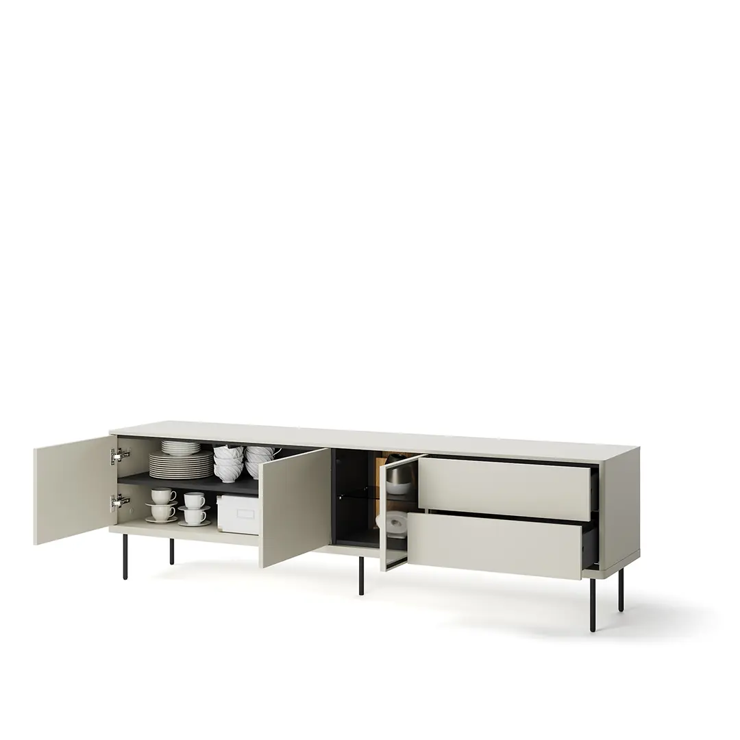 Dzięki szufladom komoda jest wyjątkowo praktyczna i funkcjonalna, a także pozwala na szybkie i łatwe porządkowanie – wystarczy schować potrzebne rzeczy, by stworzyć przestrzeń do relaksu i spokoju.