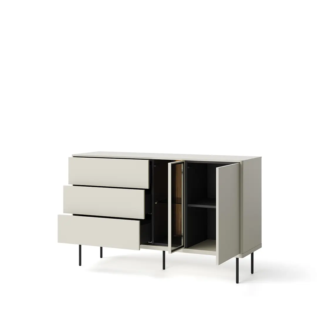 Komoda z szufladami na nóżkach to idealne rozwiązanie dla osób, które cenią nowoczesny, lekki design. Nóżki dodają meblowi wizualnej lekkości, co sprawia, że komoda wygląda elegancko i subtelnie, nawet w mniejszych pomieszczeniach. Wnętrze nabiera dzięki temu przestronności i nie wydaje się przytłoczone.