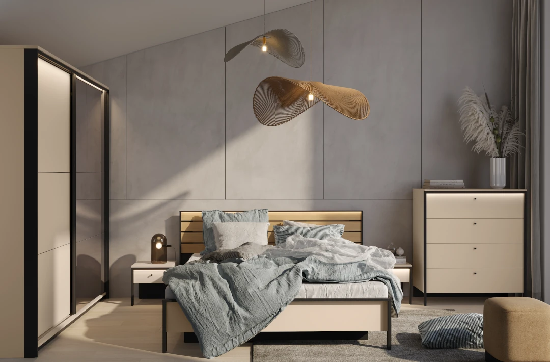 EN-02 to nowoczesne łóżko do sypialni, które powstało z myślą o zapewnieniu jak najlepszej jakości odpoczynku. Dodatkowym atutem produktu jest ciekawy design i kolorystyka, dzięki którym idealnie sprawdzi się w sypialniach urządzonych zgodnie z najnowszymi trendami. Nowoczesne łóżku do sypialni, pozwala stworzyć komfortowe miejsce do wypoczynku, które będzie zachwycać swoim wyglądem i funkcjonalnością. To nie tylko miejsce do spania, to również wyjątkowy element dekoracyjny, który doda wyrazu Twojej sypialni.