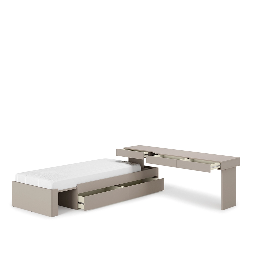 Szukasz sposobu, jak zmieścić wszystko w małym pokoju nastolatka? Łóżko z biurkiem łączy miejsce do spania, nauki i przechowywania. Maksymalna funkcjonalność nawet na kilku metrach kwadratowych.