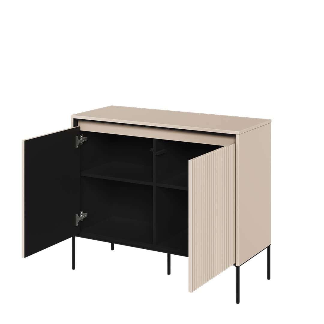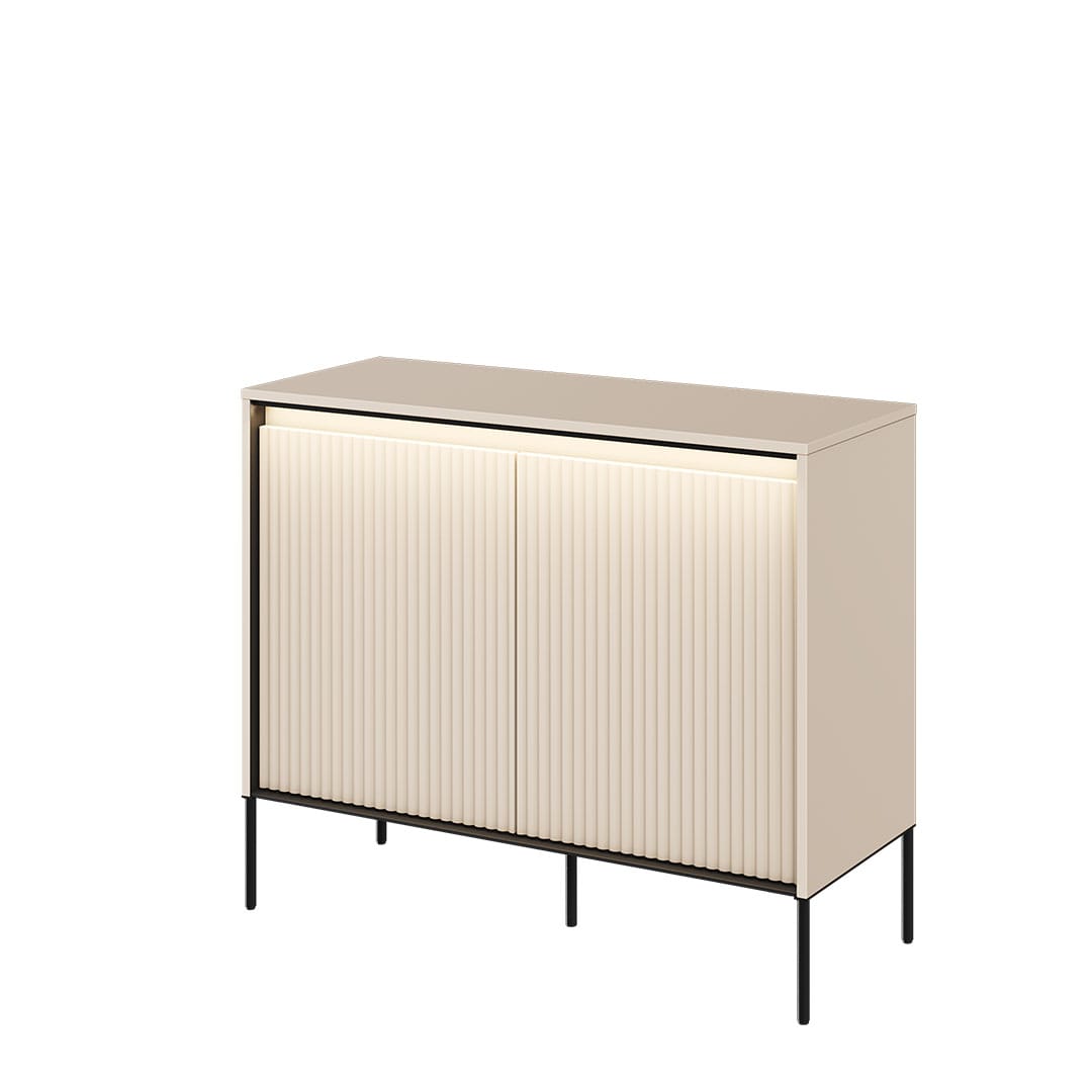Jeśli szukasz funkcjonalnej i stylowej komody do swojego wnętrza, to mamy dla Ciebie idealne rozwiązanie! Nasza mała komoda z ryflowanymi frontami to mebel, który nie tylko doskonale wykorzystuje dostępną przestrzeń, ale także przyciąga wzrok swoim unikalnym designem. Jednym z najbardziej charakterystycznych elementów naszej komody są jej ryflowane fronty, które dodatkowo podkreśla ledowe oświetlenie w komplecie. Te eleganckie wzory dodają subtelności i stylu, tworząc piękny kontrast z gładkimi powierzchniami. Dzięki nim komoda wyróżni się w Twoim wnętrzu i stanie się jego istotnym elementem. Wysoka jakość wykonania naszej komody gwarantuje trwałość na lata. Dodatkowo, ryflowane fronty są łatwe w utrzymaniu czystości. Jeśli poszukujesz małej komody, która łączy w sobie funkcjonalność i estetykę, nasz mebel z pewnością spełni Twoje oczekiwania. Przekonaj się sam, dlaczego nasza mała komoda z ryflowanymi frontami jest doskonałym wyborem i pozwól jej dodać stylu i elegancji Twojemu wnętrzu.