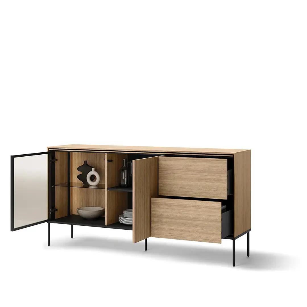Nasza modna komoda do salonu została zaprojektowana z myślą o nowoczesnych wnętrzach, w których liczy się elegancja i funkcjonalność. Wyróżnia się minimalistycznym, ale jednocześnie wyrafinowanym designem, który doskonale komponuje się z różnymi stylami aranżacyjnymi – od skandynawskiego, przez loftowy, aż po klasyczny. Dzięki starannie dobranym materiałom i perfekcyjnemu wykończeniu, komoda stanowi wyjątkowy element dekoracyjny, który przyciąga wzrok.