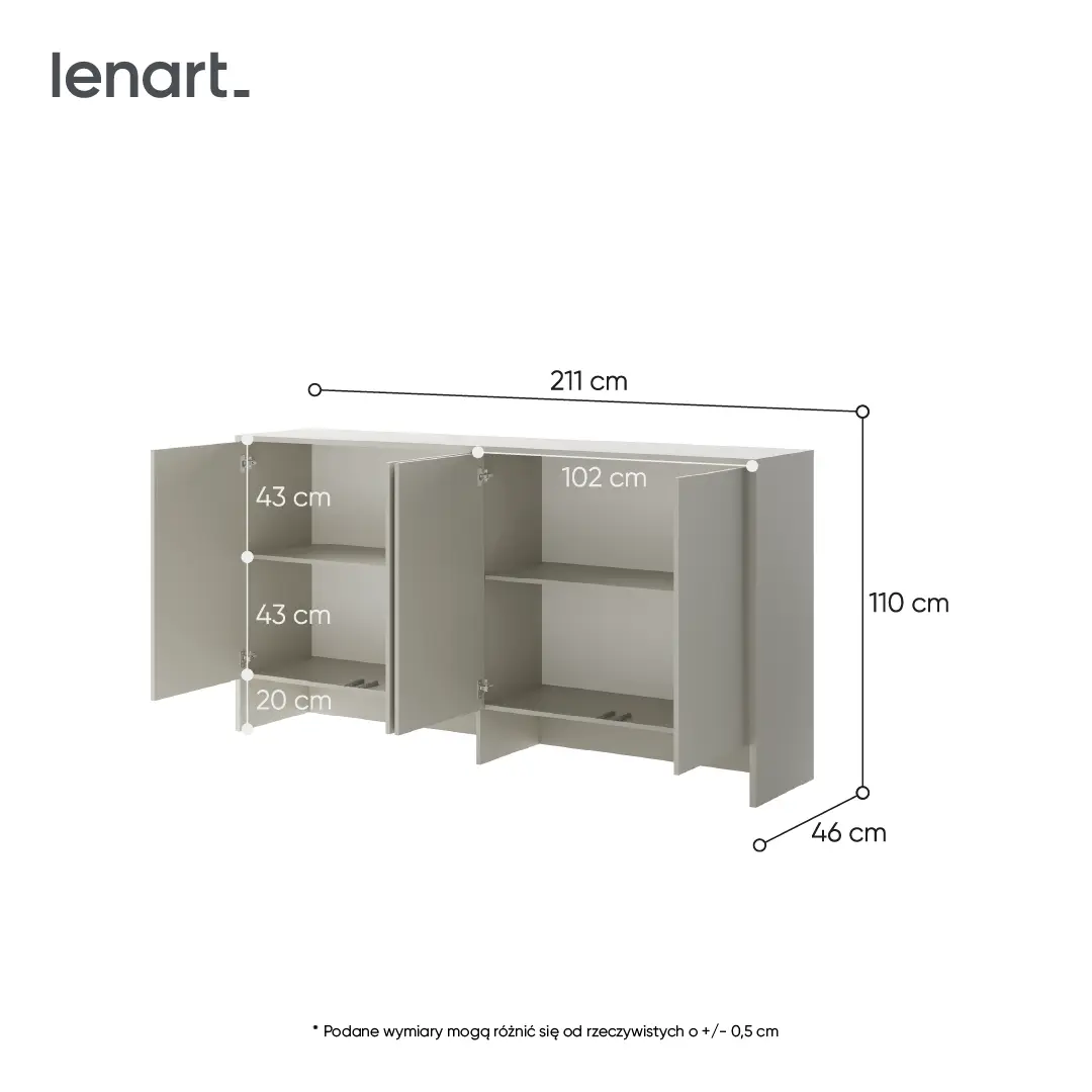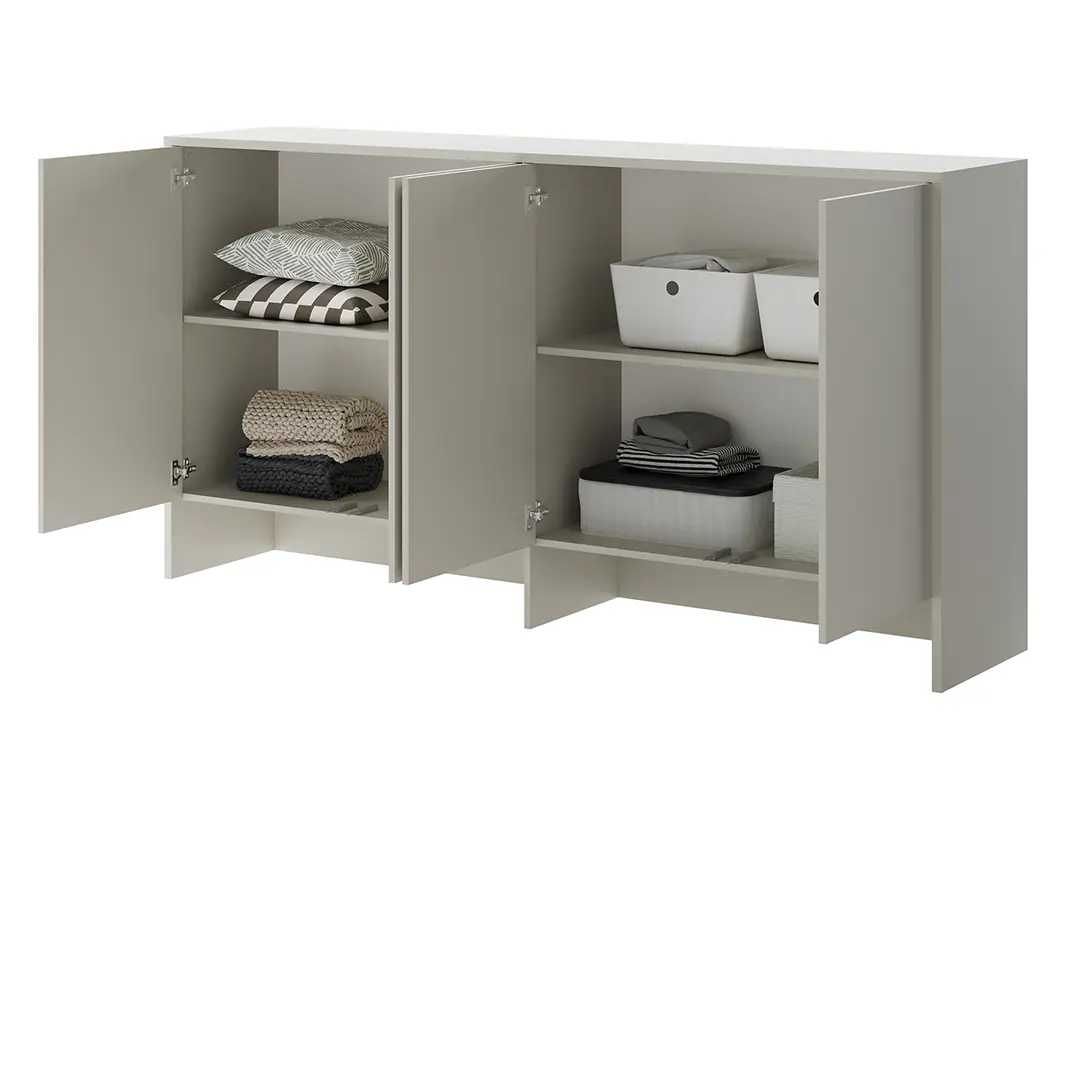 Dzięki przemyślanemu układowi wnętrza z łatwością uporządkujesz ubrania, książki czy akcesoria. Cztery drzwi zapewniają estetyczne zamknięcie przestrzeni, a uniwersalny design pozwala dopasować nadstawkę do różnych aranżacji. To doskonałe uzupełnienie, zwłaszcza do małych wnętrz.
