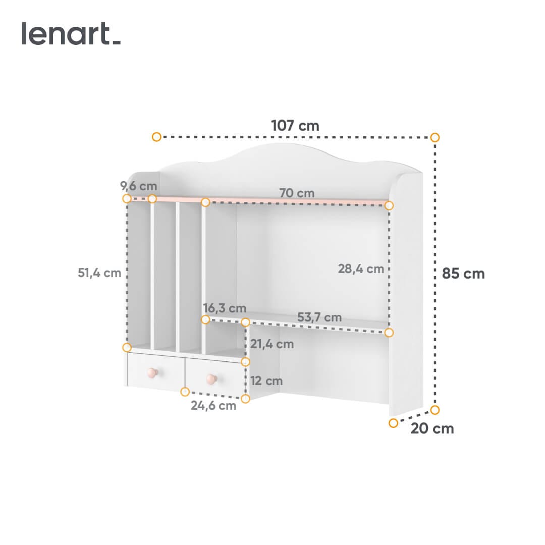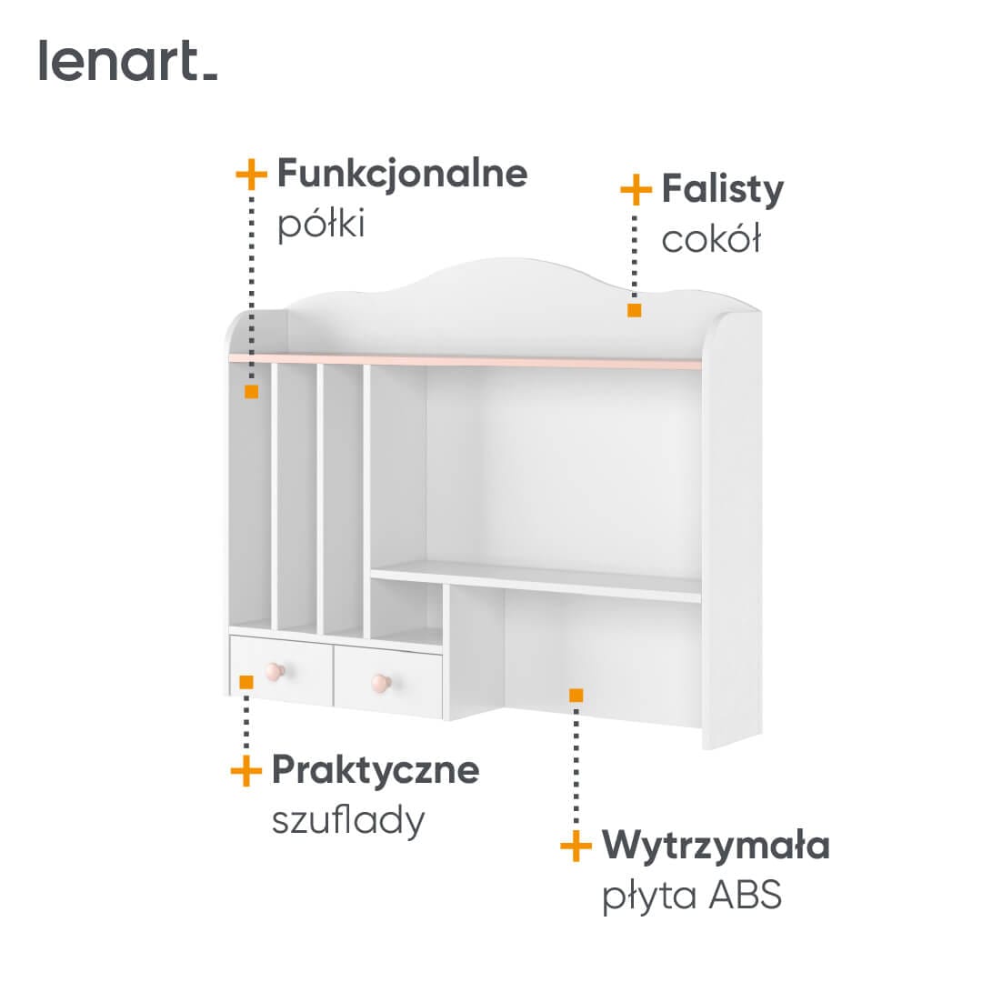 Nadstawka wyposażona jest w dwie małe szufladki na przybory szkolne lub inne akcesoria.