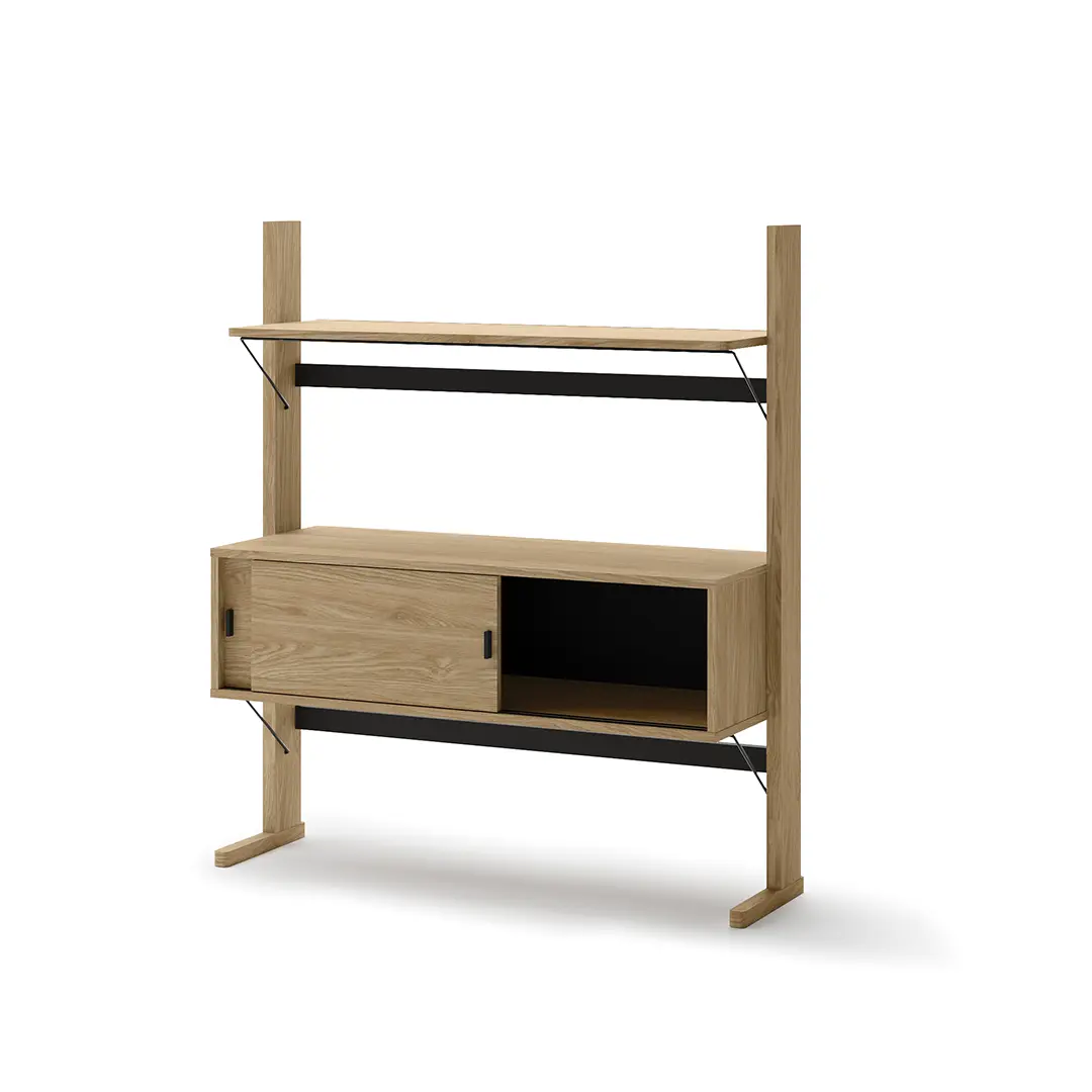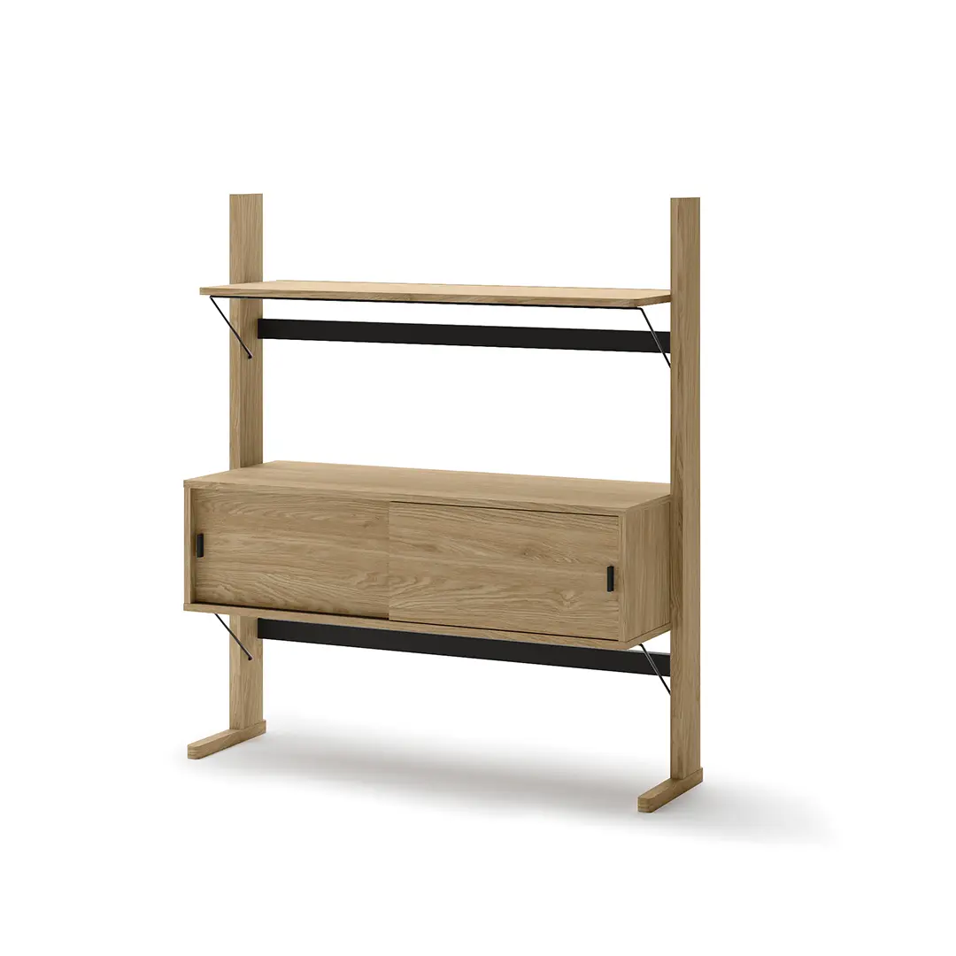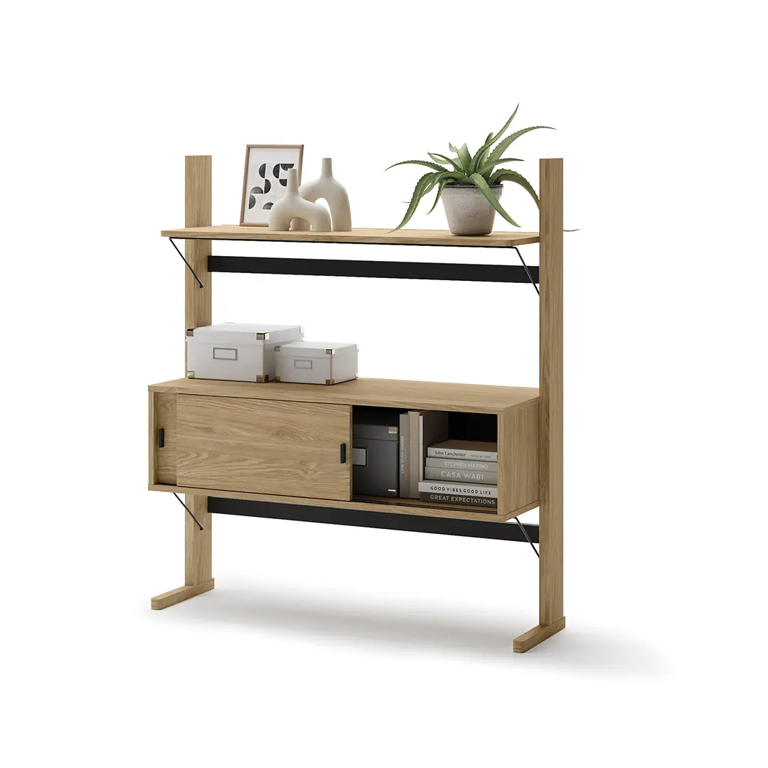 - Kompaktowe wymiary. Niski regał doskonale sprawdzi się w mniejszych pomieszczeniach lub wszędzie tam, gdzie przestrzeń jest ograniczona. Jego niewielka wysokość pozwala na łatwe dopasowanie do każdego kąta – pod oknem, przy kanapie czy w sypialni.