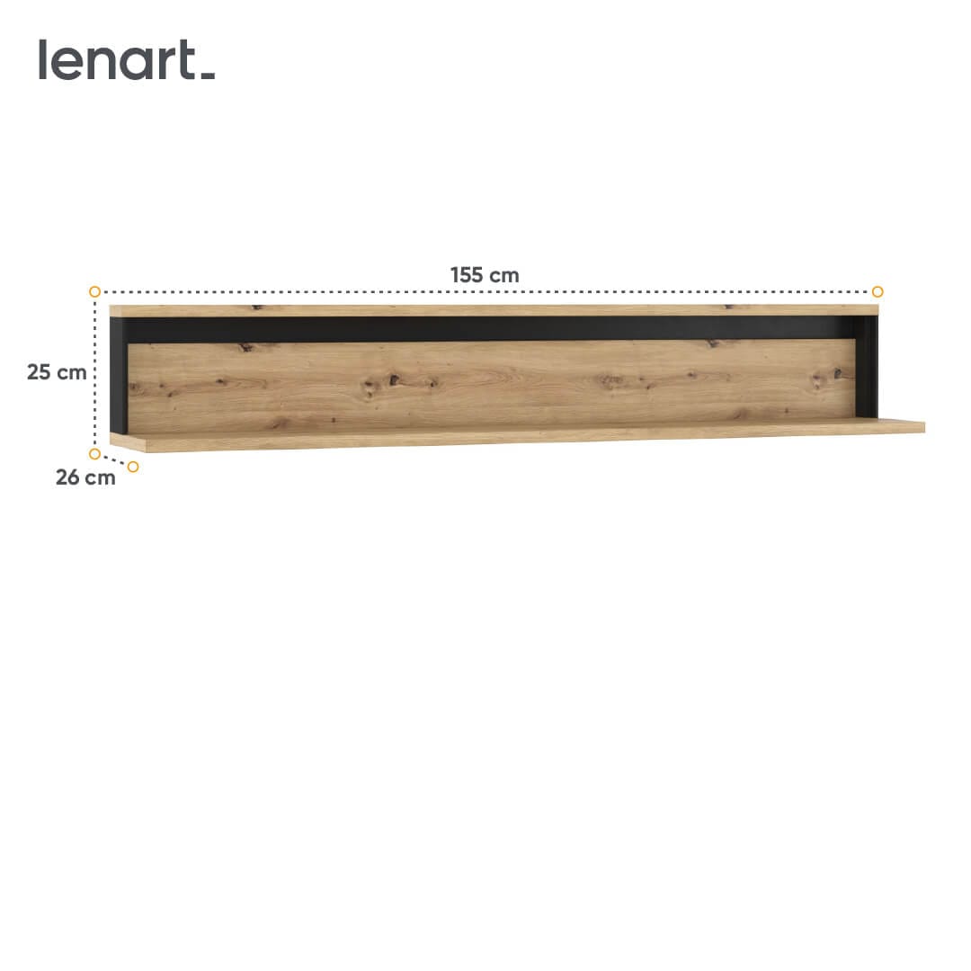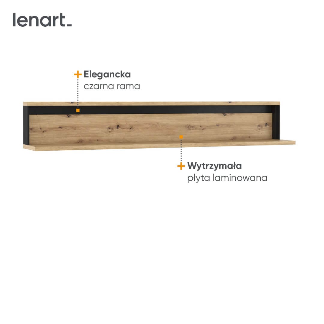 Półka wisząca na książki i dekoracje. Pozwala ergonomicznie wykorzystać ściany do przechowywania. Znakomicie prezentuje się zawieszona nad innymi meblami z kolekcji QUANT, np. komodą lub szafką RTV.