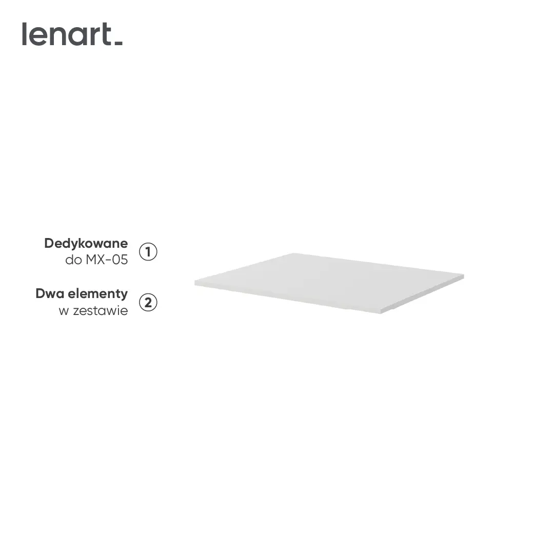 Dodatkowe półki (2 szt.) dedykowane do szafy MX-05 z kolekcji MAXI. Są doskonałym uzupełnieniem mebla stworzonym dla osób, które chcą mieć wszystkie swoje ubrania w jednym miejscu, zachowując jednocześnie wysoką estetykę przechowywania. Można dzięki nim skutecznie zorganizować garderobę i mieć łatwy dostęp do różnych rodzajów odzieży. Półki pozwalają na gromadzenie złożonych ubrań, czy pudeł z niewielkimi akcesoriami. MX-15 dają możliwość dostosowania wnętrza szafy ich do Twoich indywidualnych potrzeb.