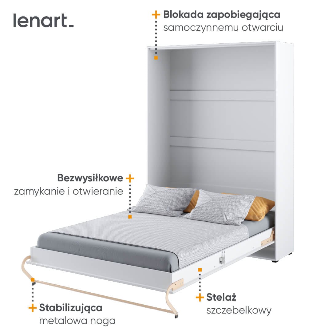 CONCEPT PRO jest całkowicie bezpieczny. Specjalna blokada uniemożliwia samoczynne otwarcie półkotapczanu, a funkcja STOP zapobiega gwałtownemu opadaniu łóżka podczas składania i rozkładania.