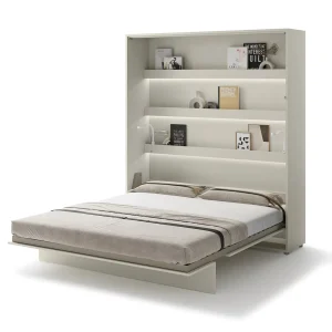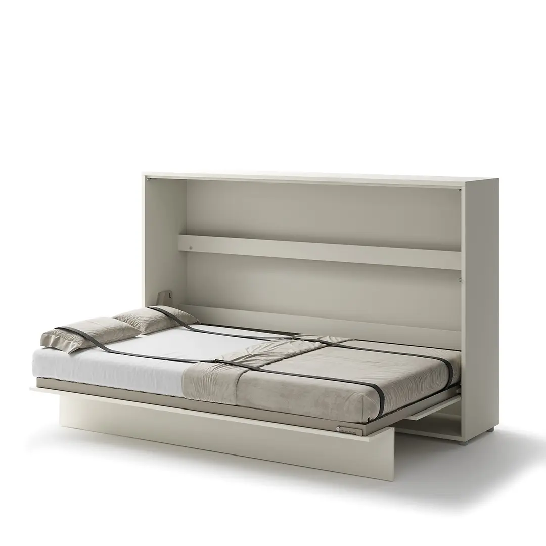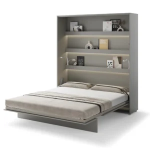 • Łóżko jest bezpieczne, stabilne i trwałe – posiada wzmocniony, montowany do ściany korpus, metalową ramę i wytrzymałą podporę zintegrowaną z frontem mebla. Pneumatyczne podnośniki zapobiegają gwałtownemu otwieraniu łózka.