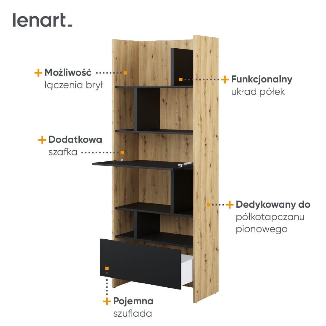 Regał BC-22 wniesie do Twojego wnętrza nie tylko świeżość i lekkość, ale również więcej przestrzeni do przechowywania. Zestawiony z półkotapczanem BED CONCEPT o orientacji pionowej, w interesujący sposób odmieni wystrój wnętrza. Ma funkcjonalny układ półek, na których możesz wyeksponować swoje ulubione dekoracje, książki lub pamiątki. Ponadto posiada szafkę oraz pojemną szufladę z systemem push to open, dzięki któremu codzienne użytkowanie będzie proste i bezproblemowe. Możliwość łączenia regału BC-21 z innymi bryłami BED CONCEPT daje szeroką gamę możliwości w aranżacji wnętrza.