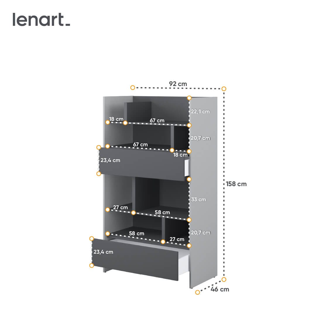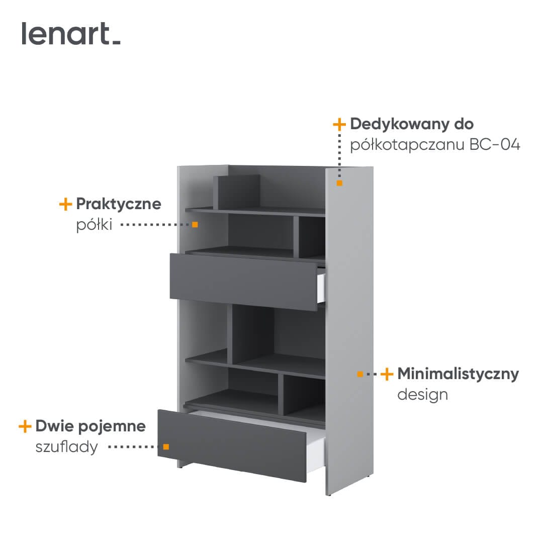 Regał do półkotapczanu BC-04 to nie tylko funkcjonalny element wyposażenia, ale także idealna podstawa do aranżacji stylowych dekoracji. W zależności od preferencji i stylu dekoracyjnego, można na nim wyeksponować różnego rodzaju dodatki, takie jak kwiaty, książki, lampki czy zdjęcia i pamiątki. Dzięki temu regał staje się nie tylko praktycznym elementem, ale również interesującą dekoracją, która przyciąga uwagę i dodaje pomieszczeniu wyjątkowego charakteru. Regał BC-27 posiada półki z przegrodami oraz dwie pojemne szuflady, dzięki którym wszelkie drobiazgi będą na swoim miejscu. Regał do półkotapczanu BED CONCEPT to doskonały wybór dla osób, które cenią sobie funkcjonalność i stylowy wygląd swojego wnętrza. Bez wątpienia, będzie to idealny dodatek dla każdego, kto chce w ciekawy sposób wykorzystać przestrzeń swojego domu.