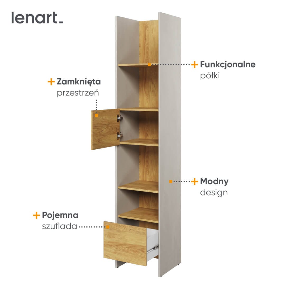 Regały to świetny sposób na przechowywanie książek i innych drobiazgów w pokoju dziecka. Ułatwiają utrzymywanie porządku, a także w ciekawy sposób eksponują ulubione dekoracje i pamiątki. Regał z szafką i półkami TF-02 to niezwykle designerska propozycja dla osób, które lubią nieoczywiste połączenia otwartej i zamkniętej przestrzeni. Regał dla nastolatka powinien być nie tylko modny, ale przede wszystkim funkcjonalny. Meble TEEN FLEX zostały zaprojektowane z myślą o pokojach młodzieżowych zarówno dziewczynek, jak i chłopców. Kolekcja wyróżnia się możliwością łączenia brył w różne zestawy i daje szerokie pole manewru w kwestii aranżacji wnętrza.
