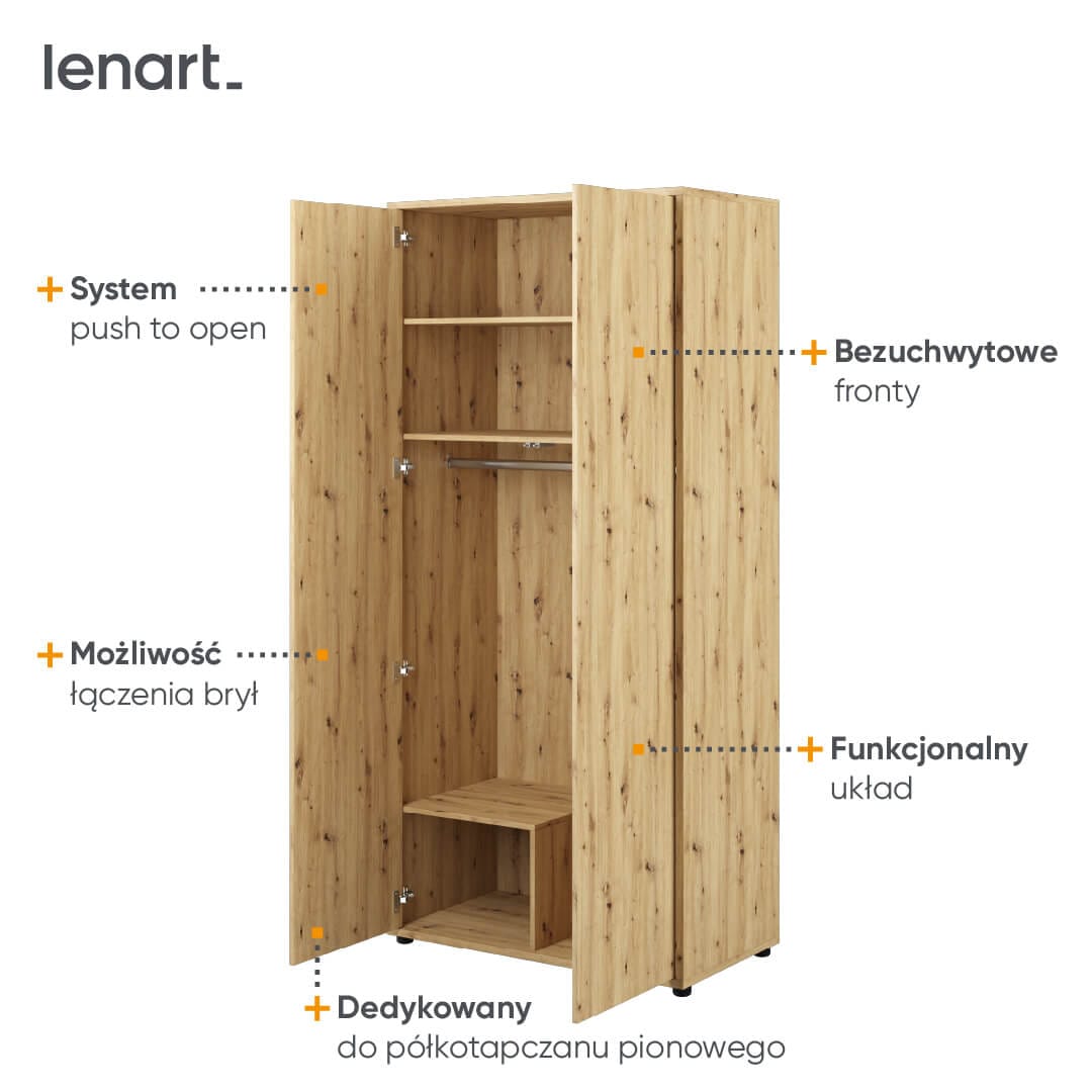 Szafa dwudrzwiowa BED CONCEPT to praktyczny mebel, który doskonale wpasuje się w każde wnętrze. Jest wyposażona w system push to open co sprawia, że otworzymy ją w jednym gestem. Dostępne są różne kolory szafy, dzięki czemu można łatwo dopasować ją do swojej aranżacji. Dodatkowo wyróżnia się możliwością łączenia z innymi bryłami BED CONCEPT w różne konfiguracje. Jest to bardzo wygodne, ponieważ można dopasować szerokość zabudowy półkotapczanu do wielkości pomieszczenia. Szafa dwudrzwiowa BC-20 to rozwiązanie, które świetnie sprawdzi się w każdym wnętrzu i będzie doskonałym dopełnieniem aranżacji.