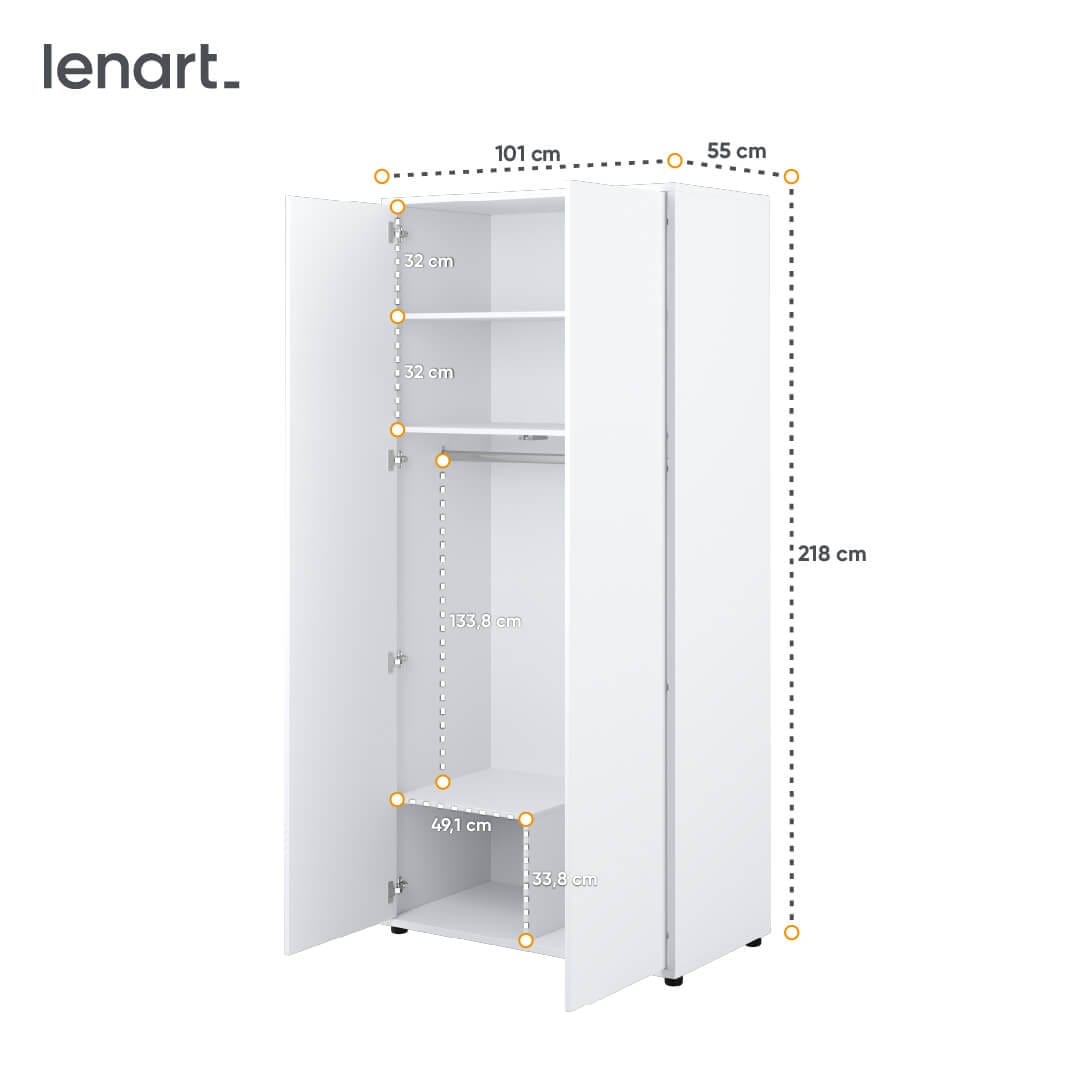 Jeśli szukasz szafy, która pomoże Ci w uporządkowaniu ubrań i uczyni pomieszczenie bardziej zorganizowanym to dobrze trafiłeś! Szafa dwudrzwiowa dedykowana do półkotapczanu Bed Concept o orientacji pionowej została wyposażona w system push to open oraz funkcjonalny układ wnętrza, w którym z łatwością uporządkujesz wszystkie przedmioty. Jeśli poszukujesz nowoczesnego i oryginalnego rozwiązania stworzonego z myślą o długotrwałym użytkowaniu to ten jest właśnie dla Ciebie. Niebanalny design to zasługa modnych kolorów, niebanalnej formy i bezuchwytowych frontów. Kolekcja wyróżnia się możliwością łączenia brył w różne konfiguracje i sprawia, że nie musimy ograniczać się w kwestii aranżacji wnętrza.