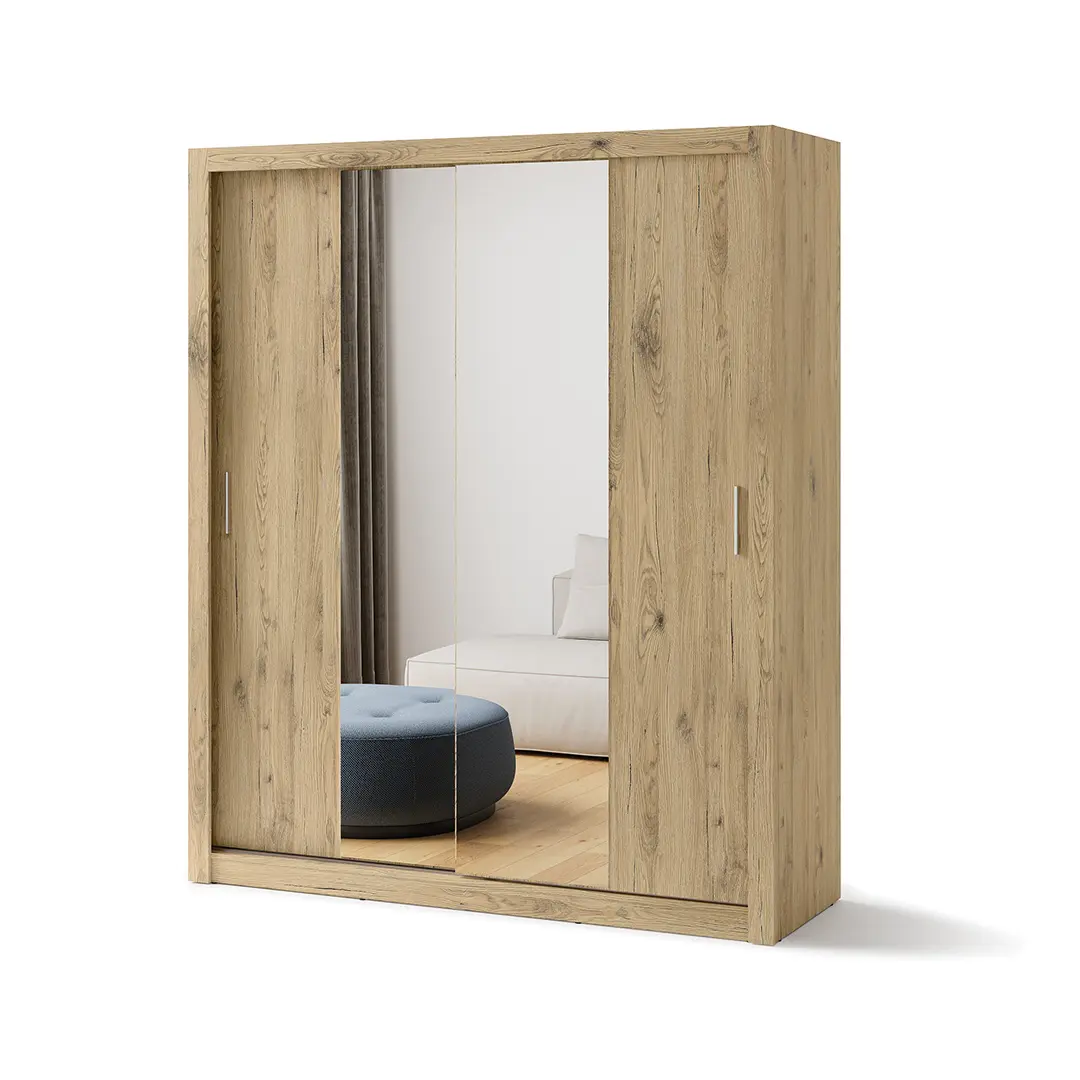 Modny, a jednocześnie uniwersalny design to zasługa prostej formy oraz sprawdzonych wybarwień, w jakich dostępna jest szafa. Uzupełnieniem jest duże lustro na obu frontach, które optycznie powiększa przestrzeń i pozytywnie wpływa na komfort korzystania z szafy.