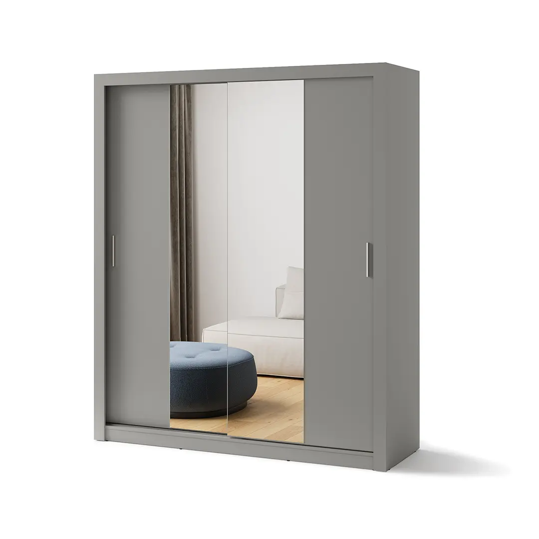 Modny, a jednocześnie uniwersalny design to zasługa prostej formy oraz sprawdzonych wybarwień, w jakich dostępna jest szafa. Uzupełnieniem jest duże lustro na obu frontach, które optycznie powiększa przestrzeń i pozytywnie wpływa na komfort korzystania z szafy.
