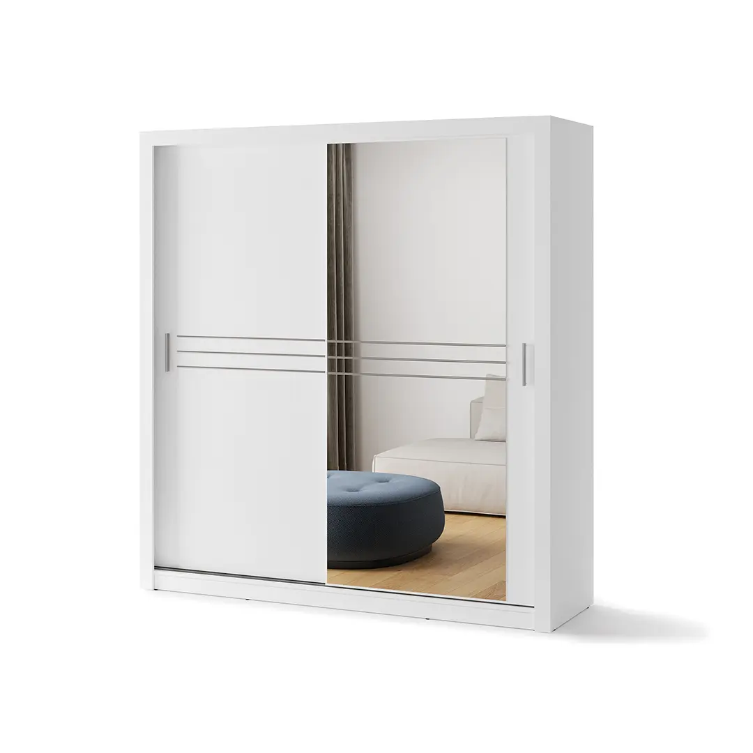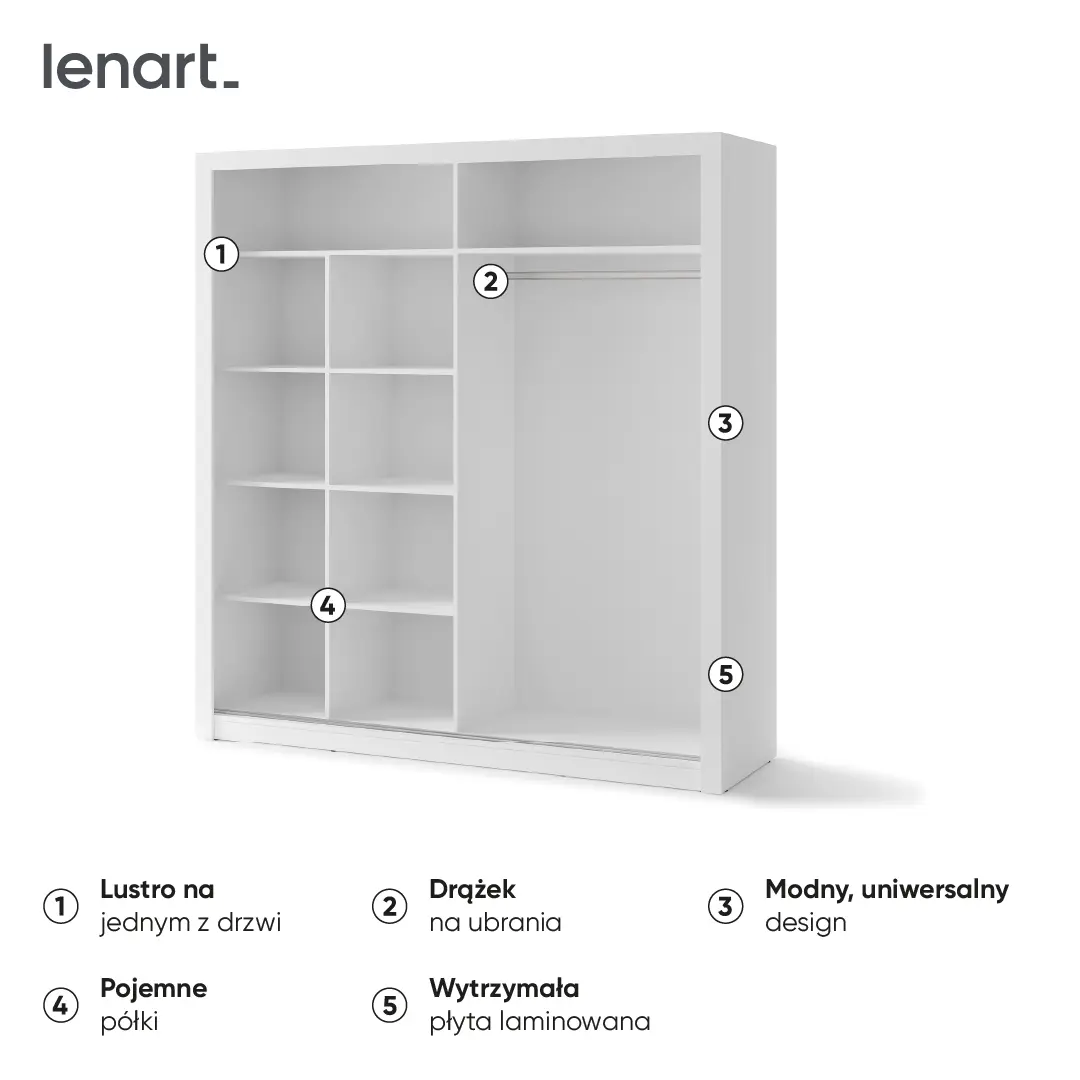 Szafa dostępna jest w kolorze białym. Mebel wykonano z wytrzymałej płyty laminowanej, wykończonej trwałym obrzeżem ABS.