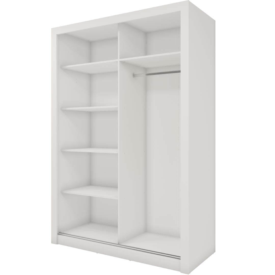 Wnętrze szafy kryje drążek na wieszaki oraz wewnętrzy regał z pojemnymi półkami. Na obszernych, górnych półkach z powodzeniem zmieszczą się rzadziej używane rzeczy lub walizki.