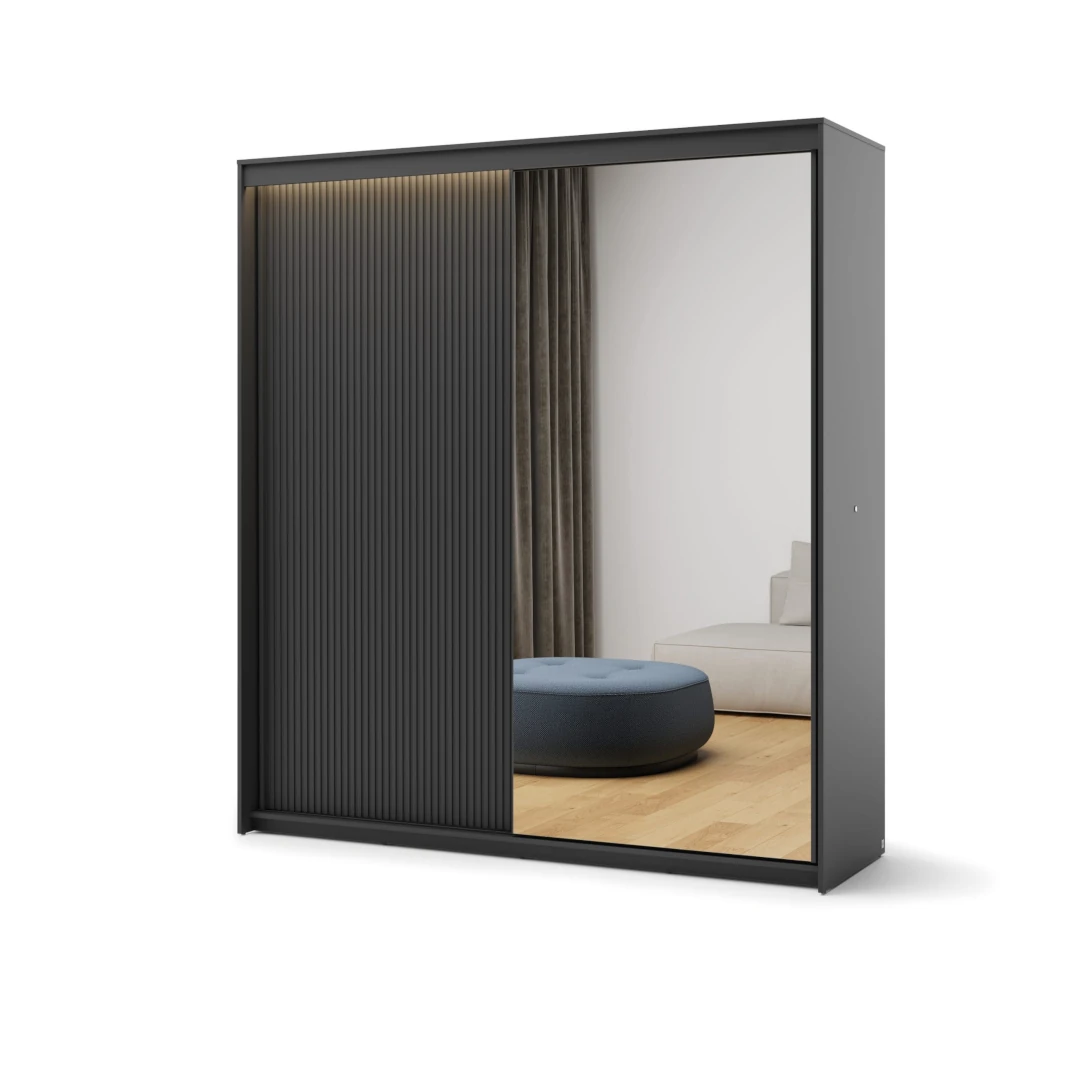 • Wybierając naszą nowoczesną szafę z lustrem i ryflowanymi frontami, inwestujesz w mebel, który łączy w sobie estetykę i praktyczność, spełniając oczekiwania nawet najbardziej wymagających użytkowników