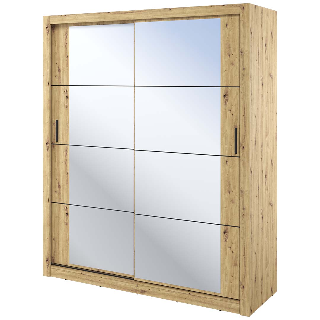 Wprowadź harmonię i funkcjonalność do swojego wnętrza za pomocą naszej szafy przesuwnej z lustrem o imponującej szerokości 180 cm! Ta nowoczesna i praktyczna szafa nie tylko maksymalizuje dostępną przestrzeń, ale również dodaje elegancji i stylu Twojej sypialni czy garderoby. Dzięki starannie zaprojektowanej konstrukcji naszej szafy przesuwnej z lustrem, oszczędzasz cenną przestrzeń. Odpowiednio rozmieszczone półki i drążki na wieszaki pozwalają na efektywne przechowywanie odzieży, obuwia i innych niezbędnych akcesoriów. Nasza szafa przesuwna 180 cm z lustrem dostępna jest w różnorodnych kolorach, co umożliwia dopasowanie jej do różnych aranżacji wnętrza. Teraz możesz stworzyć przestrzeń, która nie tylko spełnia funkcje praktyczne, ale także podkreśla Twoją unikalną estetykę. Z naszą szafą przesuwną z lustrem 180 cm przekształcisz swoje wnętrze, dodając mu nowoczesności i elegancji.