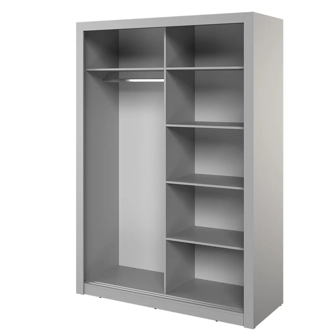 Odkryj designerski sposób na uzupełnienie Twojej sypialni – elegancka szara szafa przesuwna z lustrami! Ta szafa dodaje nie tylko stylu, ale również funkcjonalności do Twojego wnętrza. Zapomnij o bałaganie dzięki dobrze zaplanowanemu wnętrzu szafy. Dzięki przesuwnym drzwiom z lustrami, Twoja sypialnia stanie się nie tylko bardziej przestronna, ale także stylowa. Idealna do przechowywania ubrań, akcesoriów i innych drobiazgów. Ta szafa jest niezbędnym elementem dla każdego, kto ceni sobie porządek i estetykę. Wybierz naszą szarą szafę przesuwną z lustrami i podkreśl elegancję swojego wnętrza już dziś!