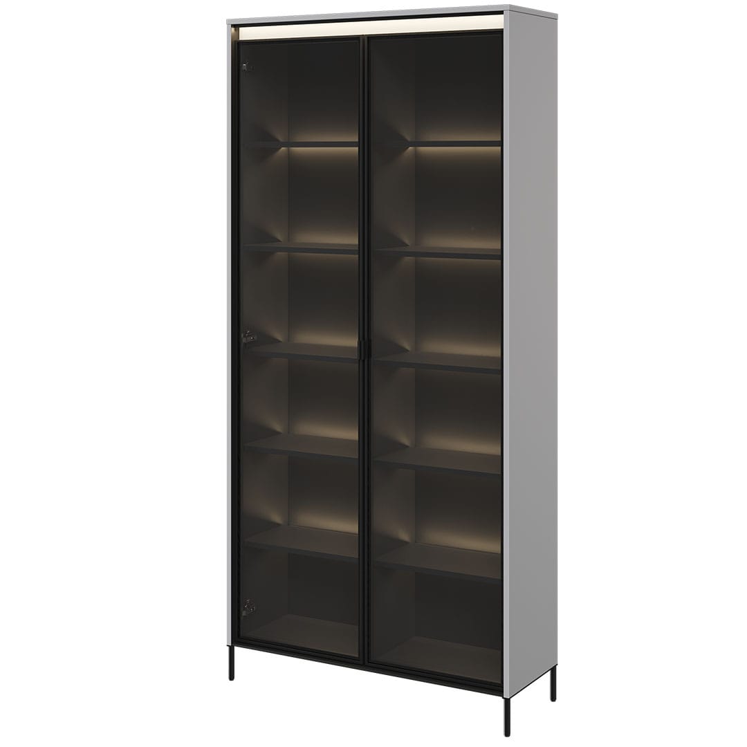 Szklana witryna do salonu oferuje wiele miejsca do przechowywania i prezentowania różnych przedmiotów. Możesz umieścić na półkach swoje kolekcje książek, zastawę lub np. albumy ze zdjęciami. Dzięki transparentnym drzwiom wszystko będzie widoczne, a jednocześnie chronione przed kurzem i zabrudzeniami. Kolor szary witryny sprawia, że doskonale komponuje się z innymi elementami wystroju. Możesz zestawić ją z białymi meblami, drewnianymi dodatkami lub kolorowymi akcentami, tworząc harmonijną aranżację. Szary to uniwersalny kolor, który dodaje elegancji i klasy, bez dominowania nad innymi elementami wnętrza. TR-07 została zaprojektowana w aż pięciu wersjach kolorystycznych, a ponadto posiada klimatyczne oświetlenie w komplecie w postaci paska led pod górnym blatem. Opcjonalnie można również doposażyć ją w oświetlenie umiejscowione za półkami wewnętrznymi.