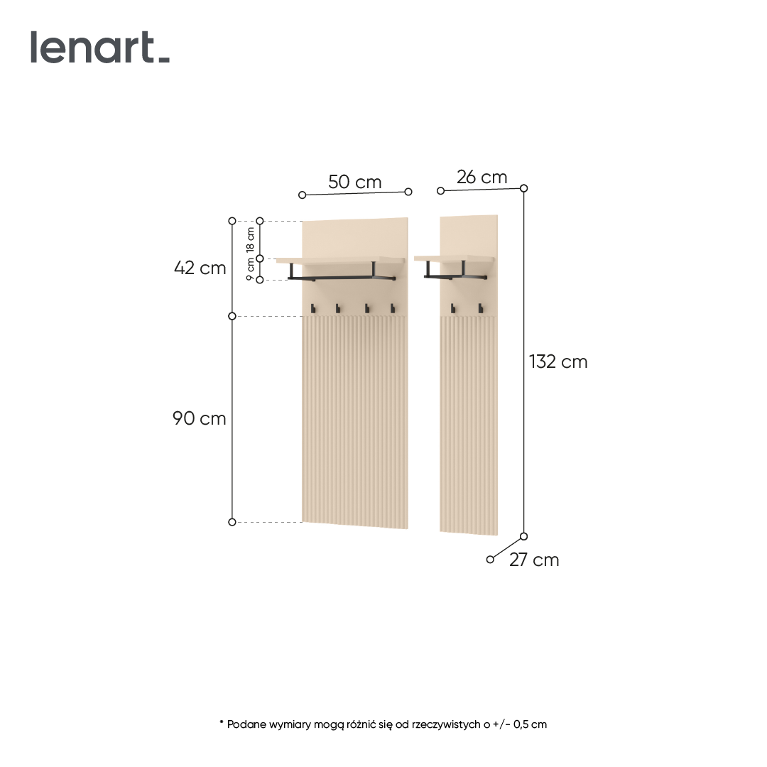 Szerokość mebla: 50 / 26 cm