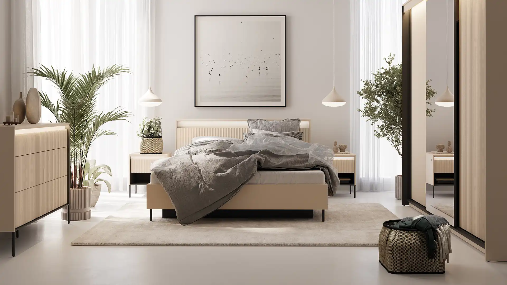 Sypialnia to pomieszczenie, w którym odpoczywamy po dniu pełnym pracy i codziennych wyzwań. Dlatego warto zadbać o to, aby całe pomieszczenie było przytulne, eleganckie a przede wszystkim funkcjonalne. Pomogą w tym dobrze dobrane meble i elementy wyposażenia – łóżko, szafka nocna lub stolik nocny, komoda i szafa. I to wszystko – tak naprawdę nie potrzebujesz już nic więcej.